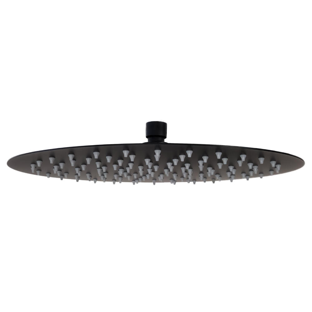 Rociador de ducha redondo, de la marca Ramon Soler, fabricado en acero inoxidable, acabado negro mate.