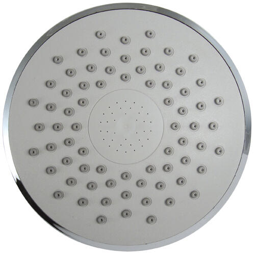 Rociador de ducha fabricado en ABS cromado. Orientable. Con 1 función: lluvia. Con picos de silicona antical. Medidas: Ø 200mm