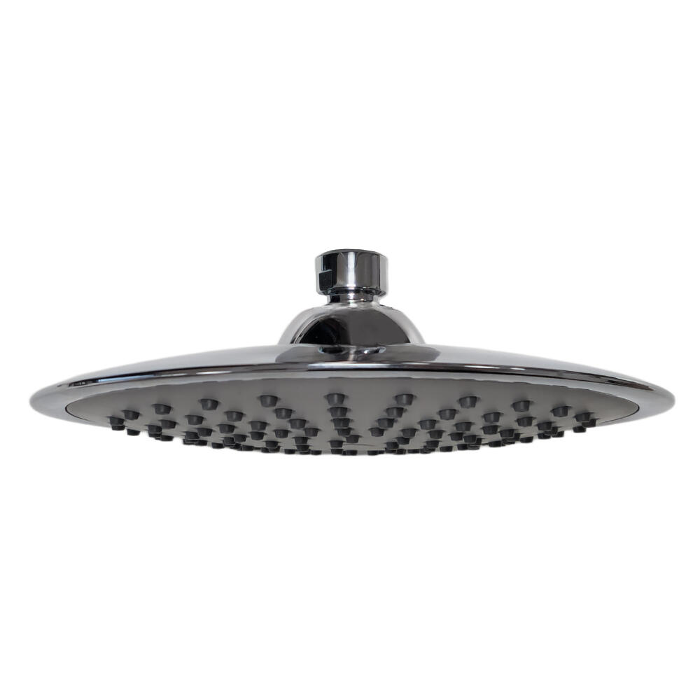 Rociador de ducha redondo, de la marca Ramon Soler, orientable, fabricado en ABS cromado.