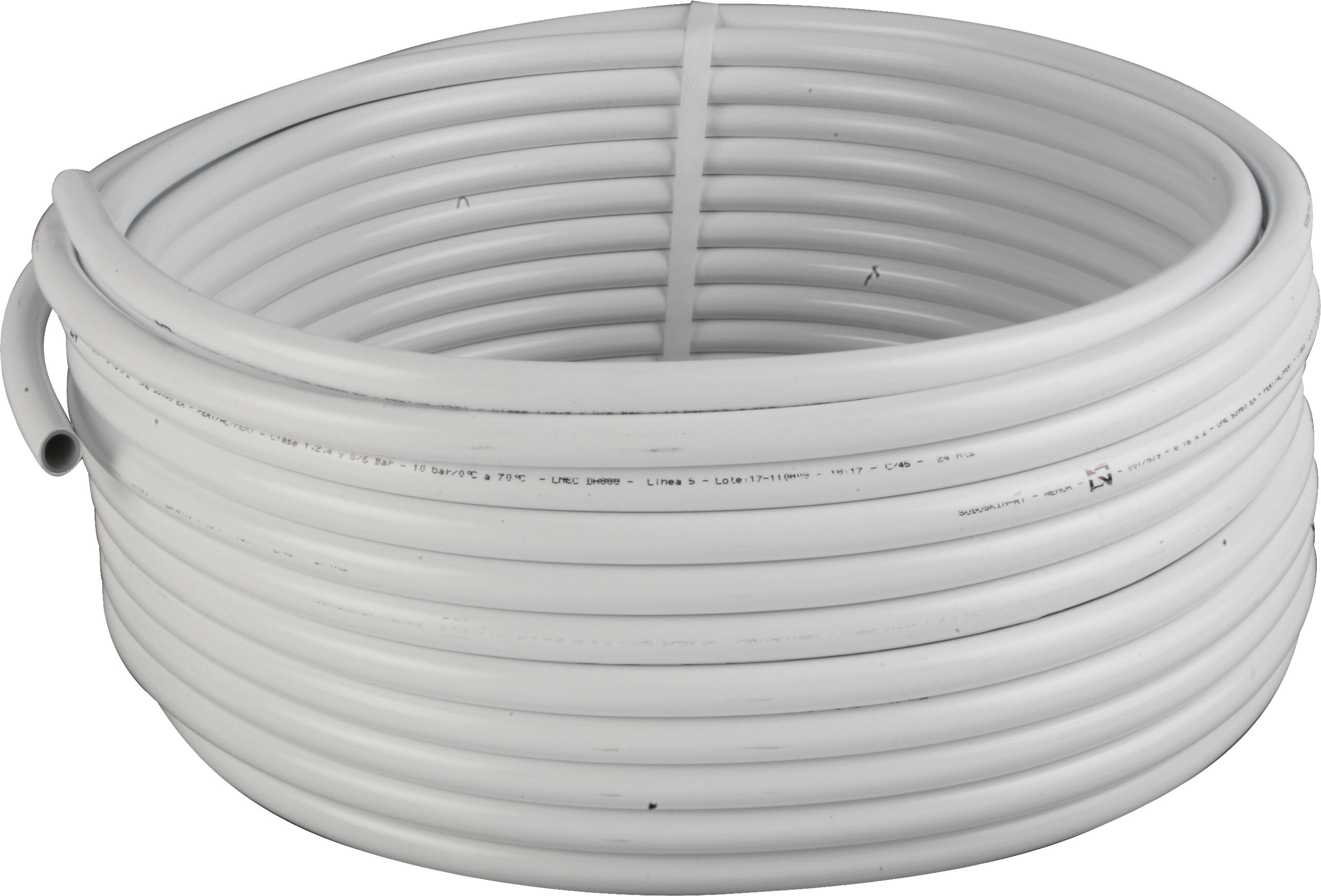 Reduce los problemas de los tubos metálicos y los tubos exclusivamente de plástico. •Están fabricados de acuerdo con la norma UNE EN ISO-21003 e ISO-161. •Ø16mmx25m.