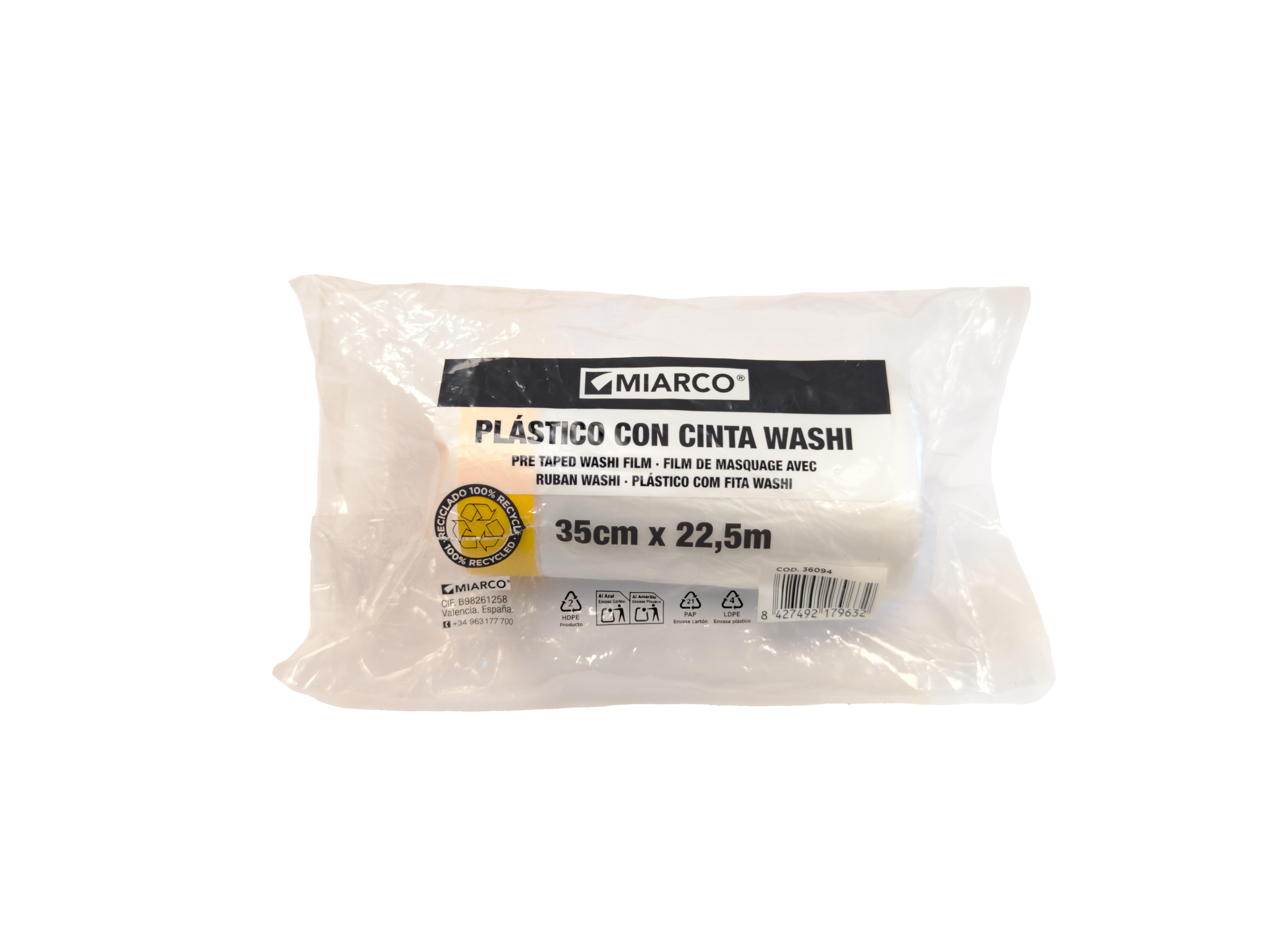 ROLLO PLÁSTICO CON CINTA WASHI RECICLADO 0.35X22.5M