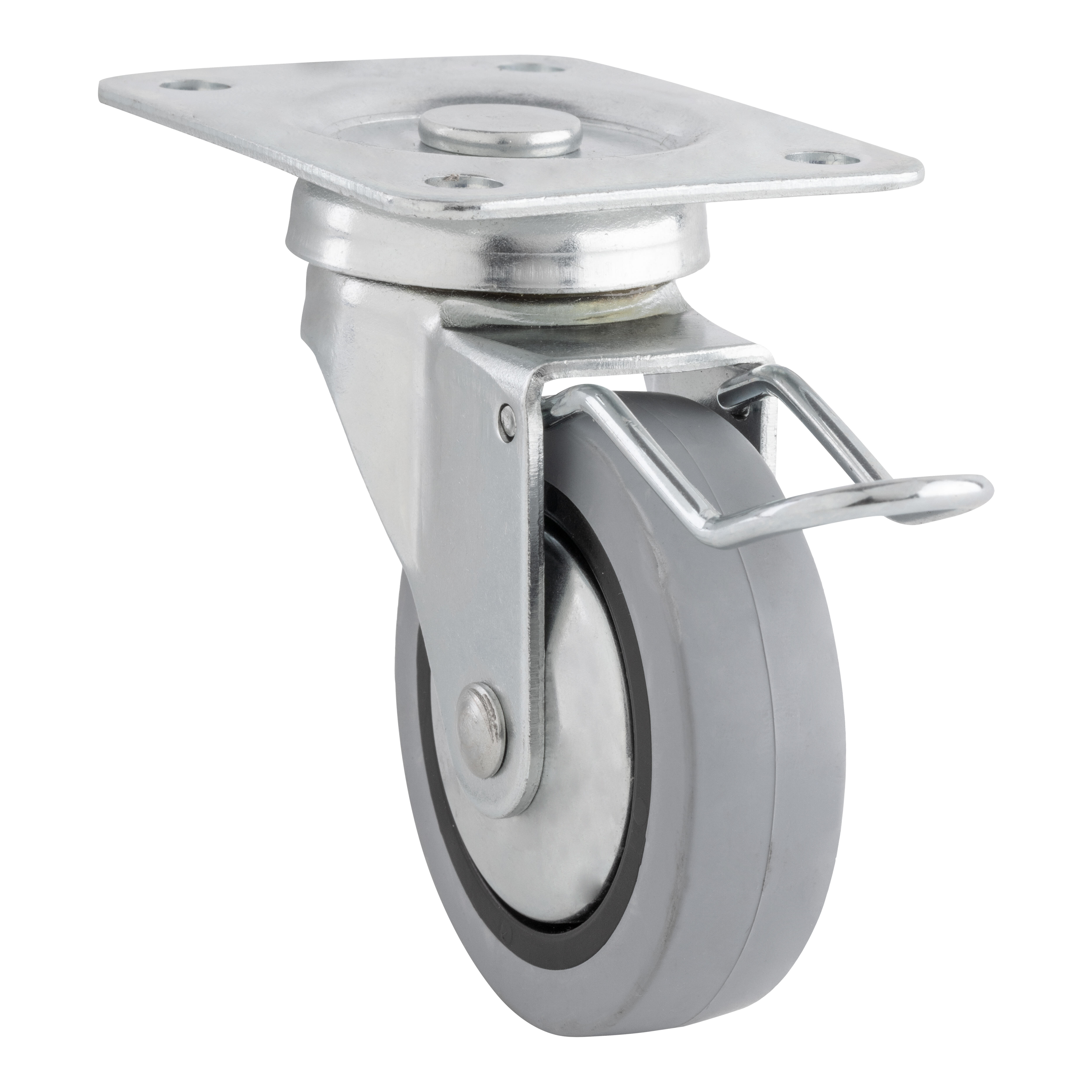 - Ventajas del producto: fabricada con chapa de acero embutida de alta resistencia, acabada en cincado para mayor durabilidad, incluida con freno para mejorar la seguridad en su uso, diseño de soporte con rodamiento a bolas que facilita el movimiento, y adecuada para temperaturas entre -20º y +60º, cumpliendo con las normas europeas EN 12528.