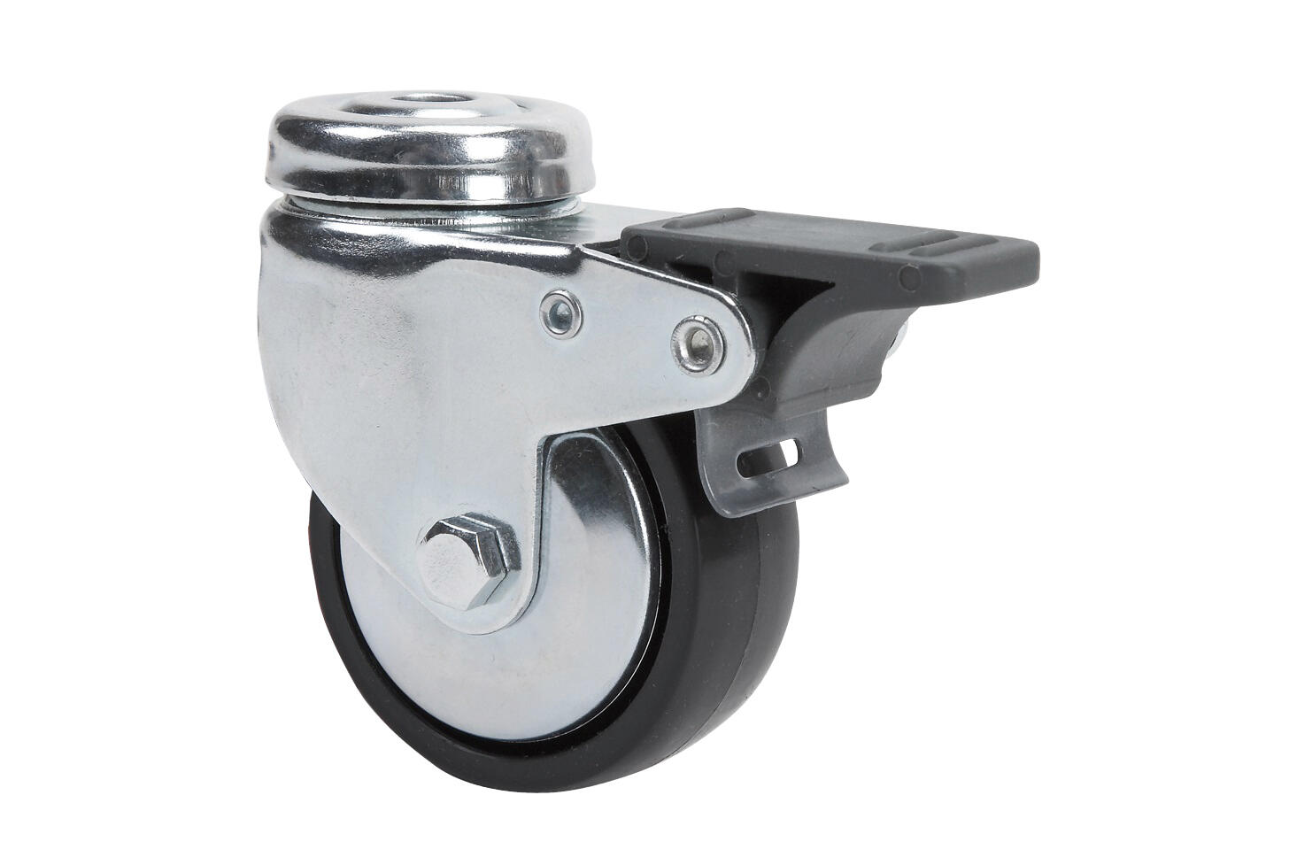 - Ventajas del producto: fabricada en poliamida negra, ofrece una alta resistencia y durabilidad, cuenta con freno para mayor seguridad, es fácil de instalar gracias a su diseño de agujero pasante, soporta una carga máxima de hasta 60Kg y su acabado en cincado brillante proporciona protección contra la corrosión.