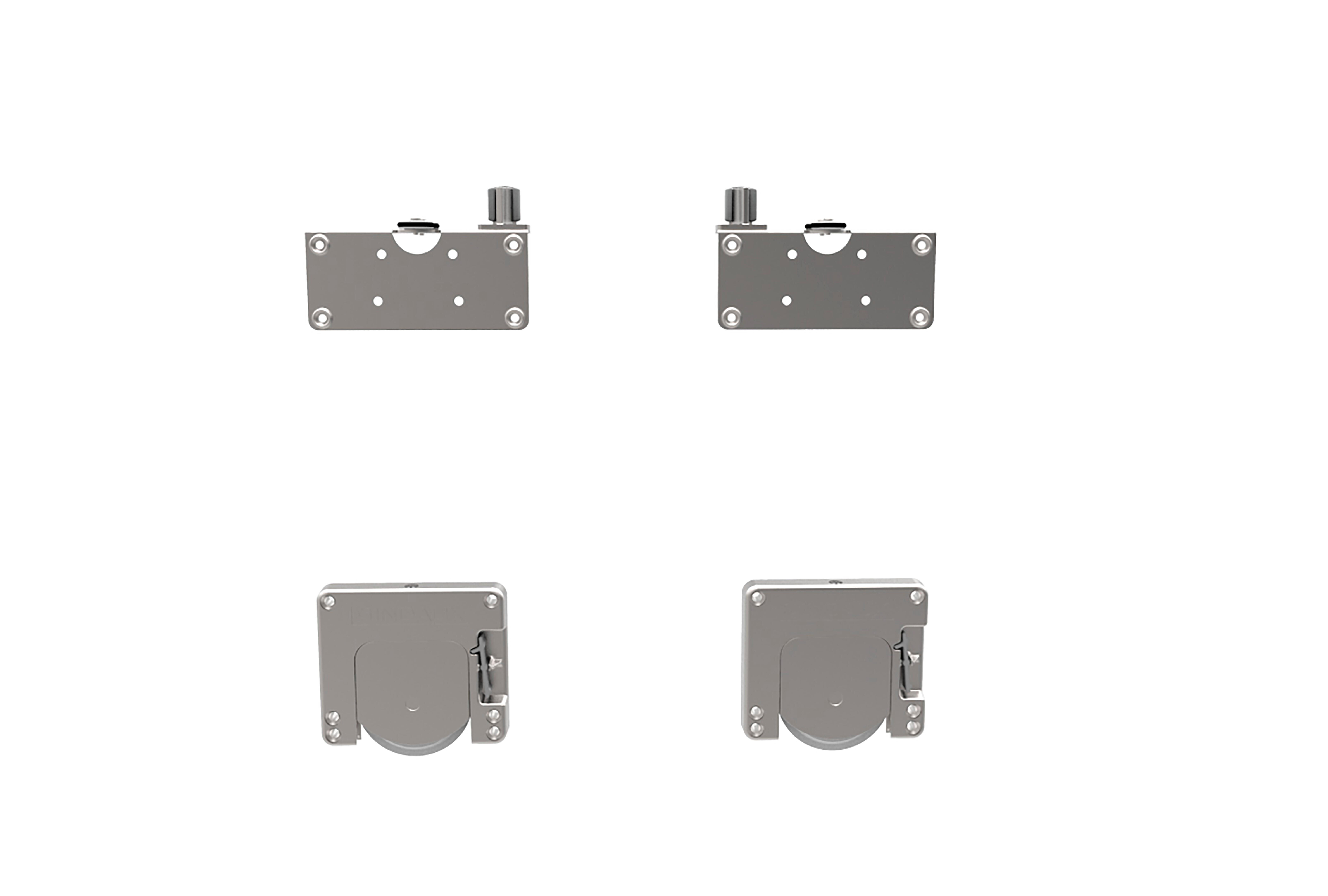 Conjunto formado por 2 ruedas inferiores fabricadas en acero y nylon con un acabado de rueda "macho" recomendado para la instación en puertas correderas de armario de hasta 60 kg de peso compuestas por paneles o tableros de hasta 16mm de espesor, disponen de sistema de regulación en altura que permite corregir los desnibeles del suelo, suma al conjunto dos cojinetes superiores que permiten incrementar la estabilidad de la puerta en su desplazamiento lateral, evitando el efecto pendulo de la puerta.