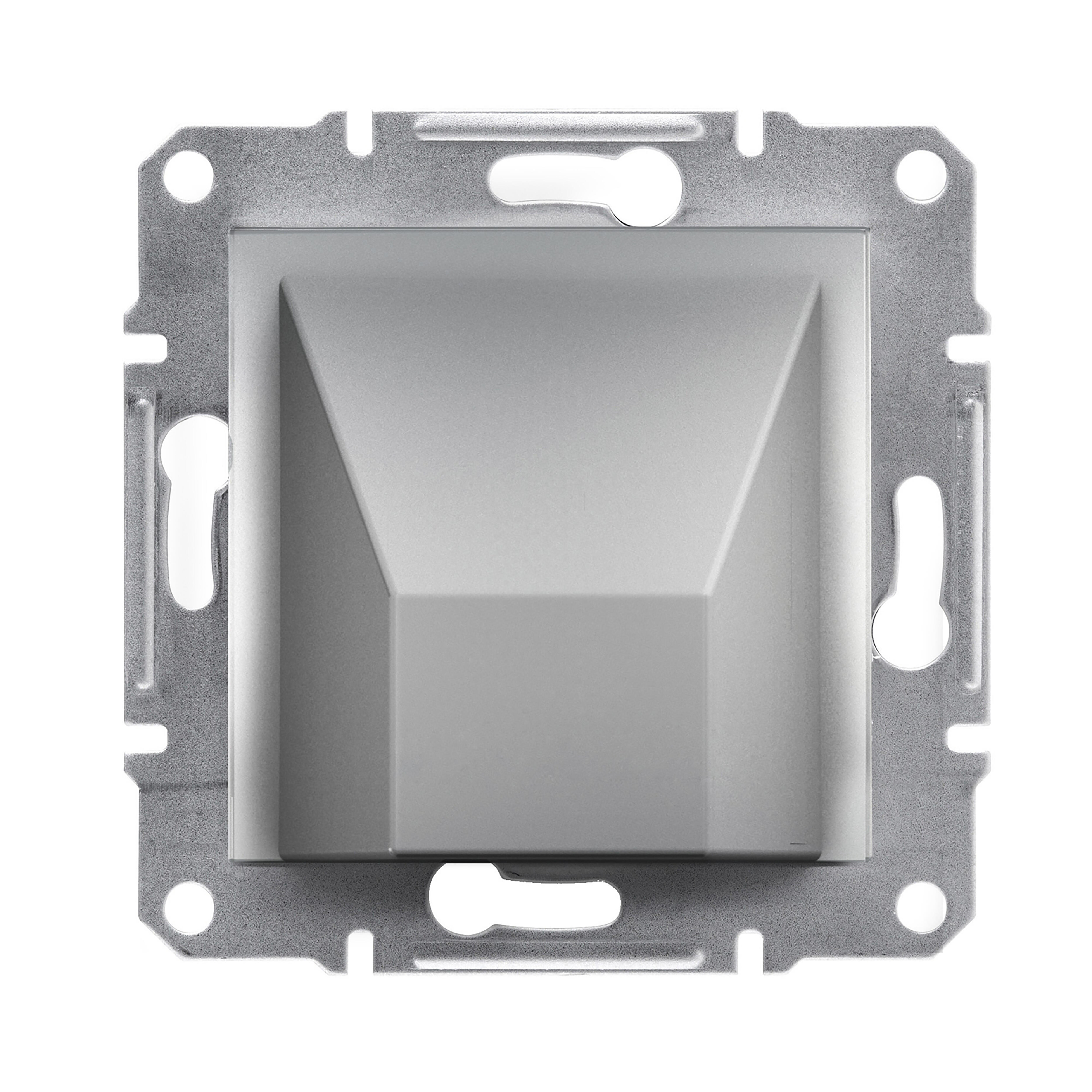Salida de cables monobloc. Acabado aluminio de la serie Asfora de Schneider. La serie Asfora se suministra en formato monobloc en el acabado blanco, mecanismo completo con marco simple blanco incluido. La serie Asfora de Schneider dispone de marcos dobles, triples o cuadruples en distintos acabados para completar su instalación.
