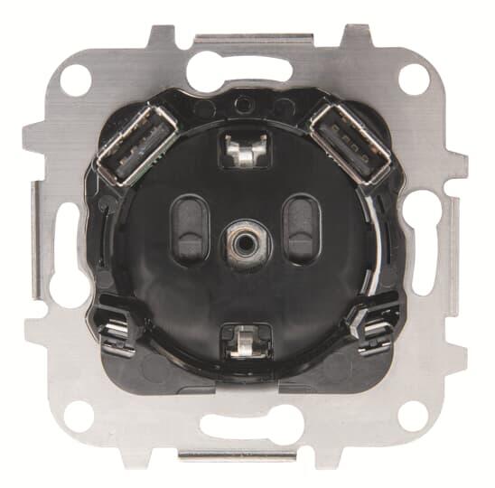 Función enchufe schuko con dos Usb de la serie Sky de Niessen. Incluye bastidor metálico, Necesita tecla o tapa y marco para completar el mecanismo. Toma de corriente Schuko®: Tensión nominal: 250 Vac. +/- 10%; 50/60 Hz. Corriente nominal: 16 A.Tipo F: 2P + E. Con persiana de seguridad para niños. Temperatura de funcionamiento: -5º C ... 45 ºC. Cargador USB: Corriente de entrada: 0,20 A (con carga máxima). Voltaje de salida: 5 Vdc ± 5%. Corriente de salida: 2.000 mA. Tipo de puerto USB: Consumo de energía en espera: <= 0,015W @ 230Vac. Eficiencia energética:> = 79%.