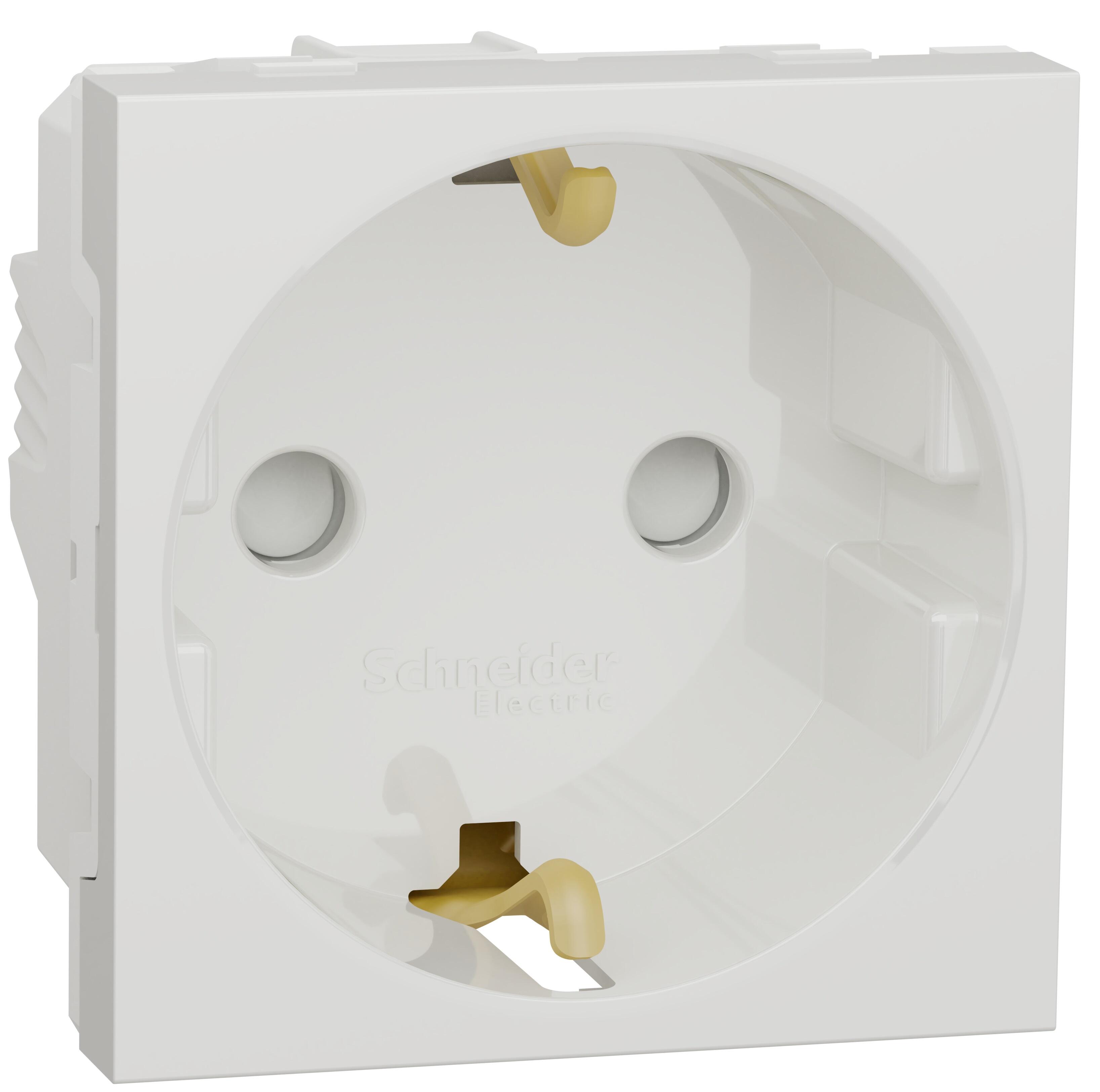 Base de enchufe schuko de 2 polos + toma de tierra de intensidad máxima 16A y 230vac, cableado por conexionado por tornillo. Acabado blanco polar de la serie New Unica de Schneider. La serie New Unica se compone por bastidor + mecanismo + marco. Para completar su instalación debe elegir el bastidor adecuado, y el marco para el acabado deseado, que se venden por separado. La serie New Unica de Schneider dispone de bastidor para caja cuadrada universal y rectangular y de marcos dobles, triples o cuadruples en distintos acabados para completar su instalación.