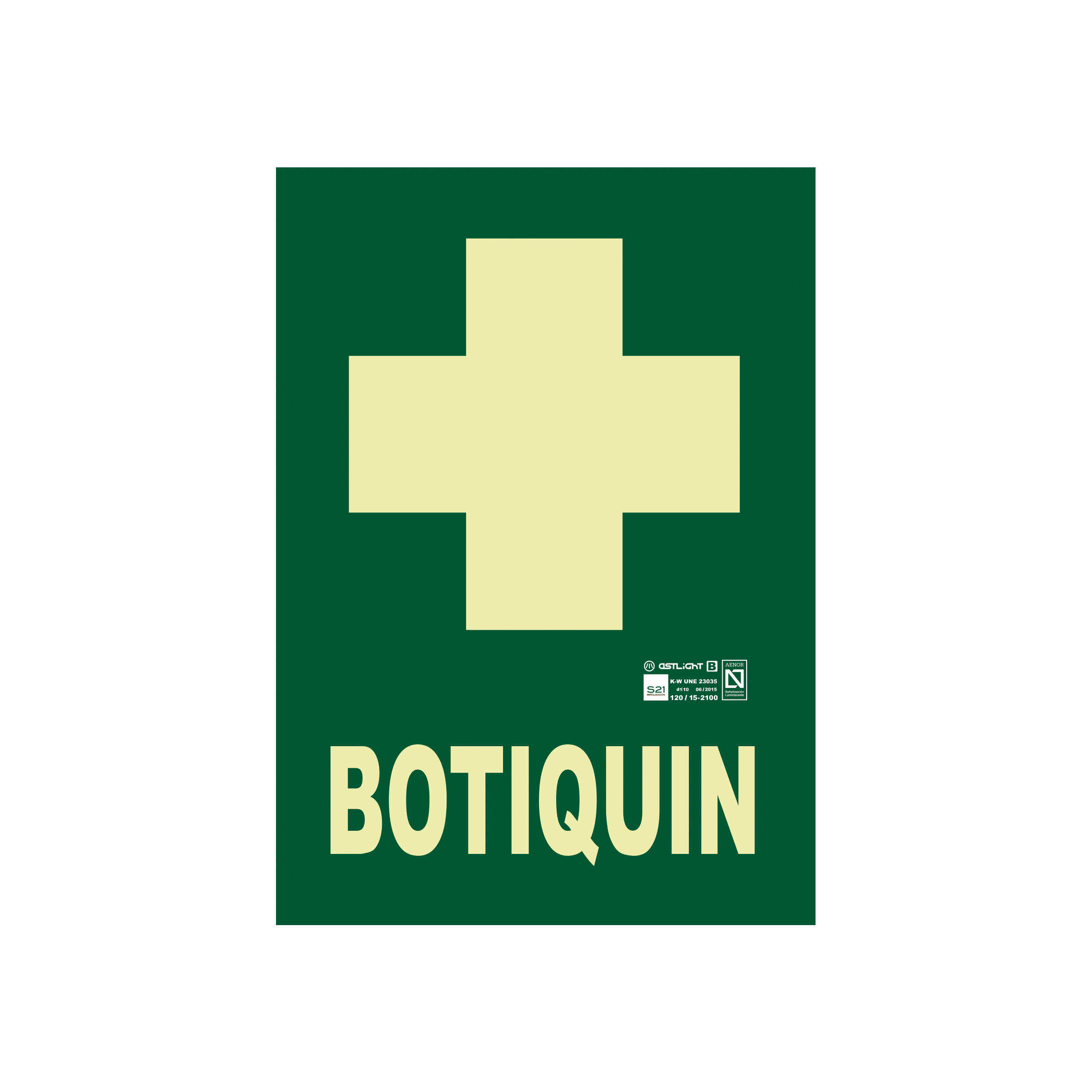- Ventajas del Producto: la señalización fotoluminiscente asegura alta visibilidad en la oscuridad y es especialmente útil para la rápida localización de los botiquines de primeros auxilios, contribuyendo a la seguridad en lugares públicos.