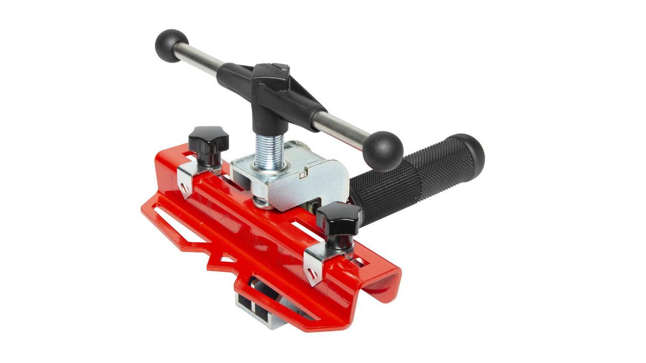 Separador auxiliar para el corte de lámina cerámica y baldosas de gran formato. Para separar espesores de 6 mm o más. Empuñadura soft para una mayor ergonomía. Sistema de ajuste al ancho de la pieza para obtener una distribución uniforme, equitativa y simétrica de la potencia de separación. Especialmente en el corte de tiras estrechas.