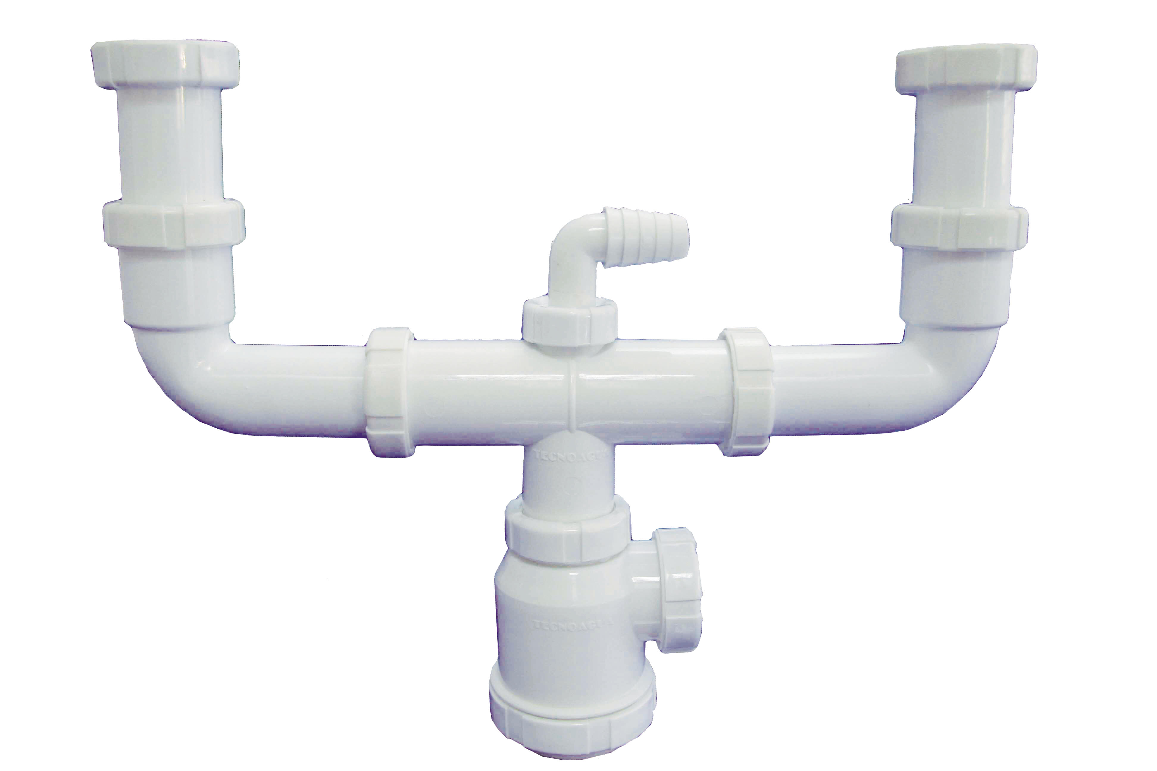 Sifón fregadero botella extensible, de diámetro 40mm (1 1/2") en color blanco, con tuercas locas. Salida horizontal.