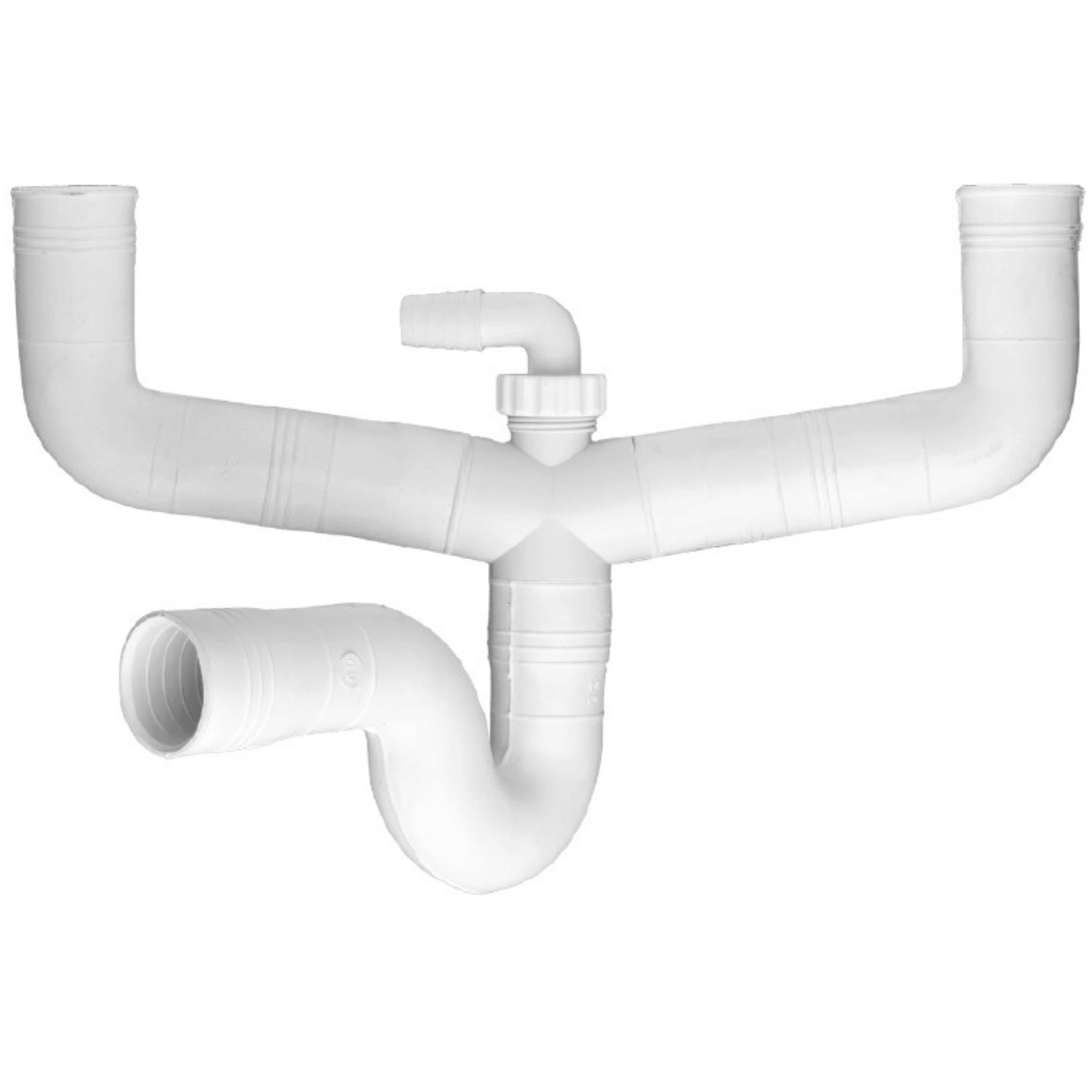 Sifón fregadero extensible, de diámetro 40mm (1 1/2") en color blanco. Salida vertical.