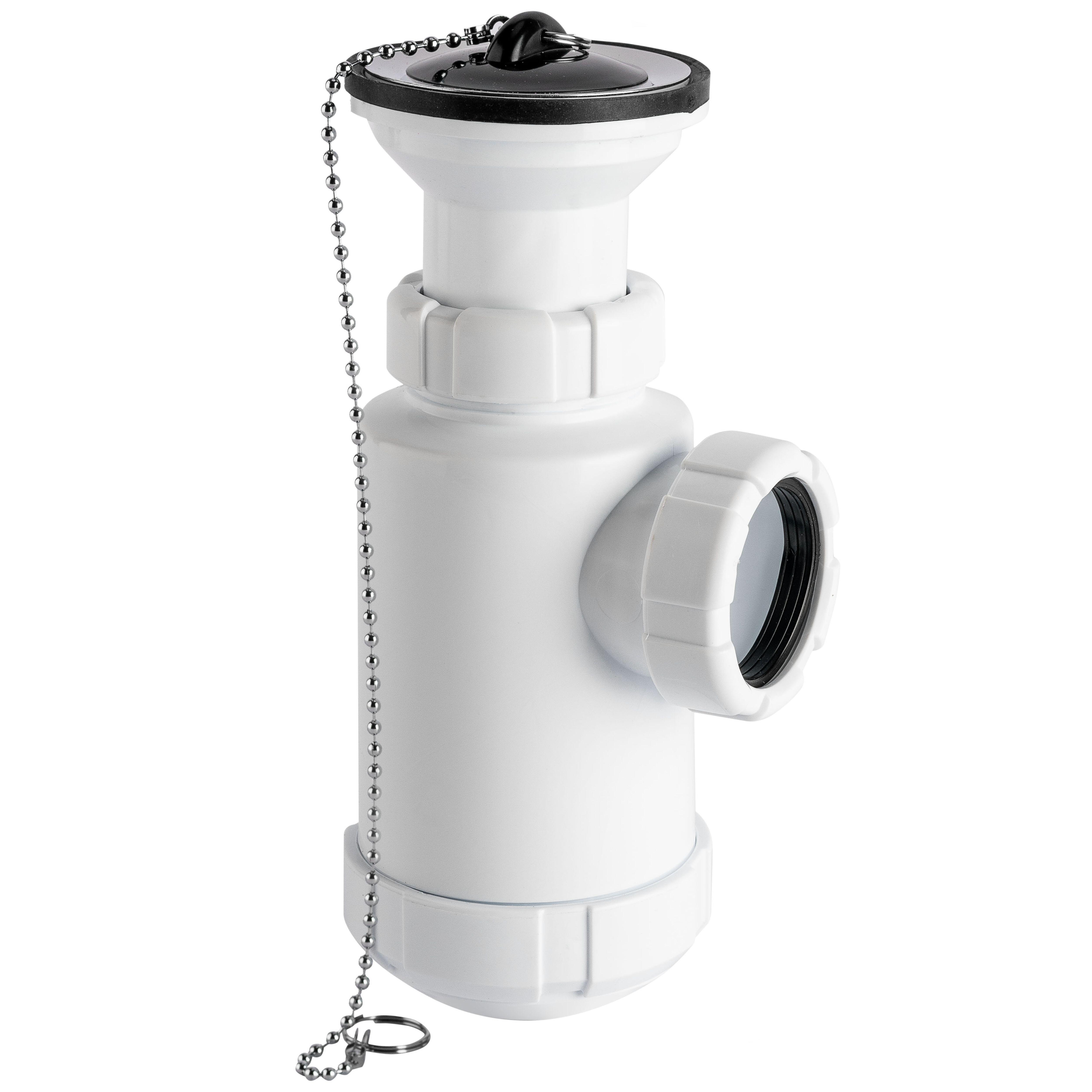 Sifón lavabo botella extensible, de diámetro 40mm (1 1/2") en color blanco. Salida horizontal.