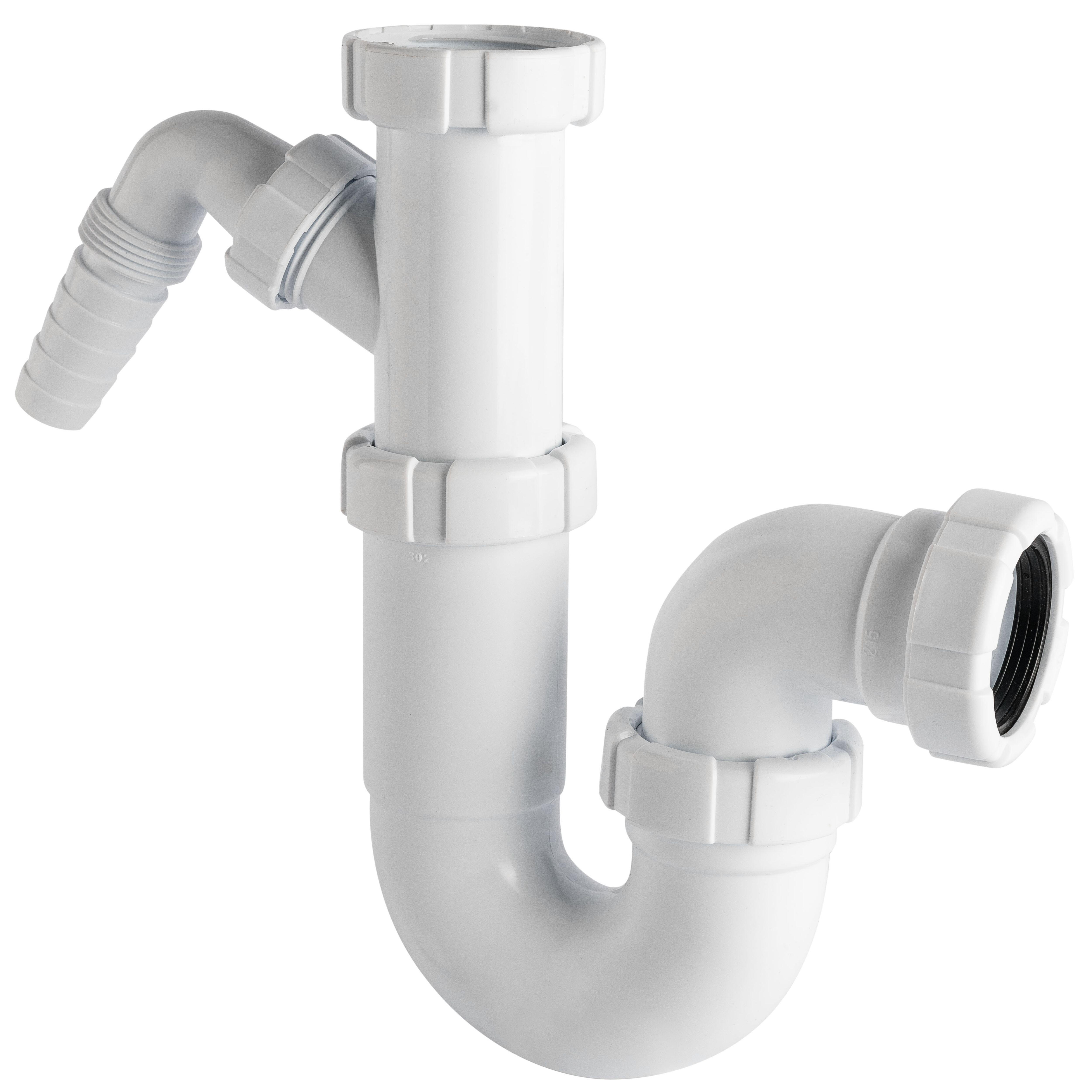 Sifón lavabo curvo extensible, de diámetro 40mm (1 1/2") en color blanco. Salida horizontal.