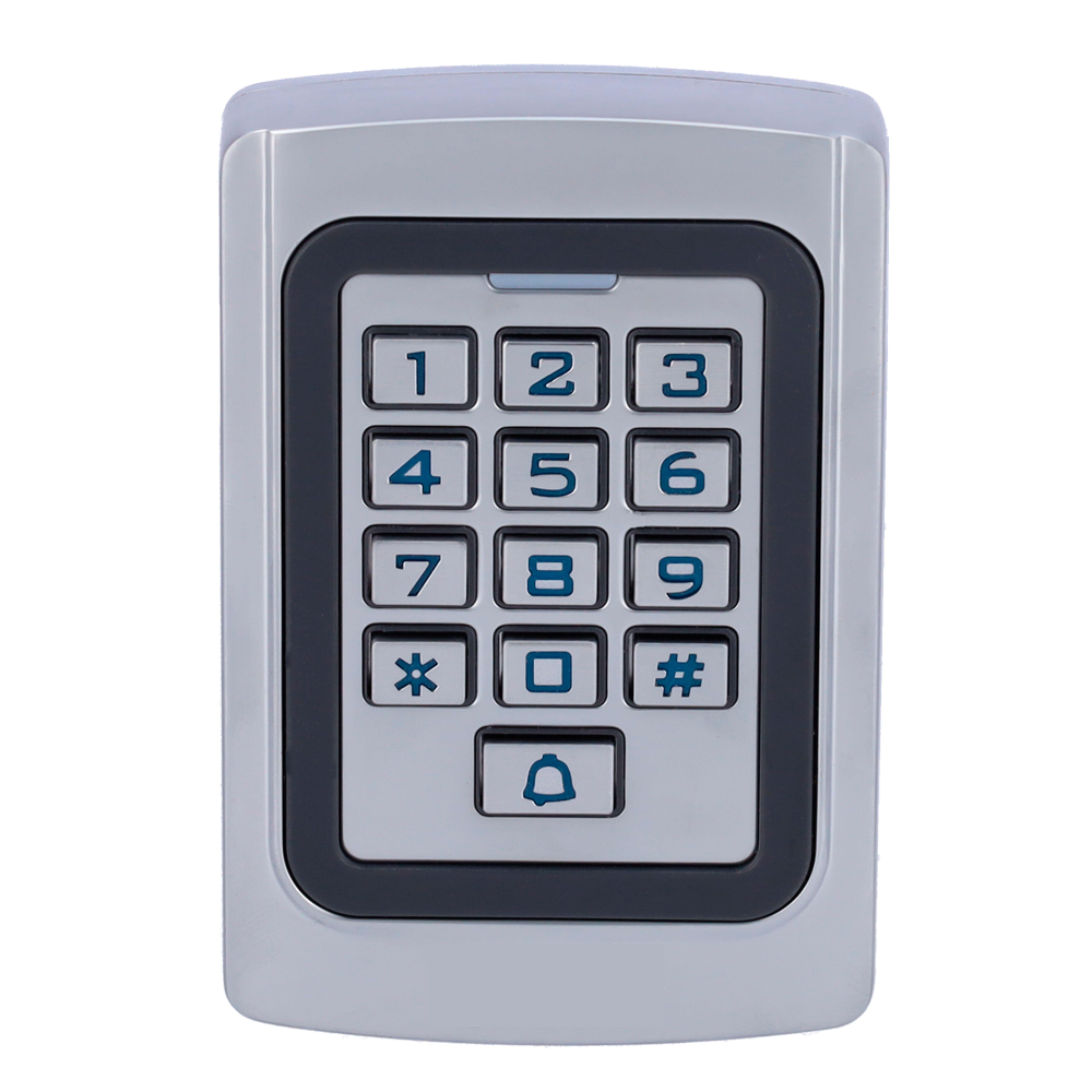 Acceso por tarjeta EM, contraseña, aplicación móvil y/o combinaciones. Teclado y carcasa metálicos. Indicador LED de señalización y acústico. Wiegand 26 y WIFI. Controladora integrada (pulsador, timbre y relé). Control de tiempo de apertura y cierre. Apto para exterior IP68 y antivandálico. Compatible con aplicación Tuya Smath para gestión y apertura. |