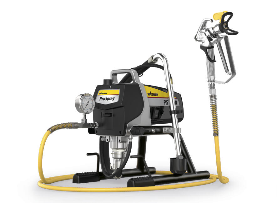 Siatema de pintura Airless de pulverización con bomba de pistón ProSpray 3.20 HEA Spraypack Wagner. Succión de la pintura directamente del recipiente. Pulverización de pinturas de dispersión y lacas. Motor de 1.030 W. Manguera 15 m