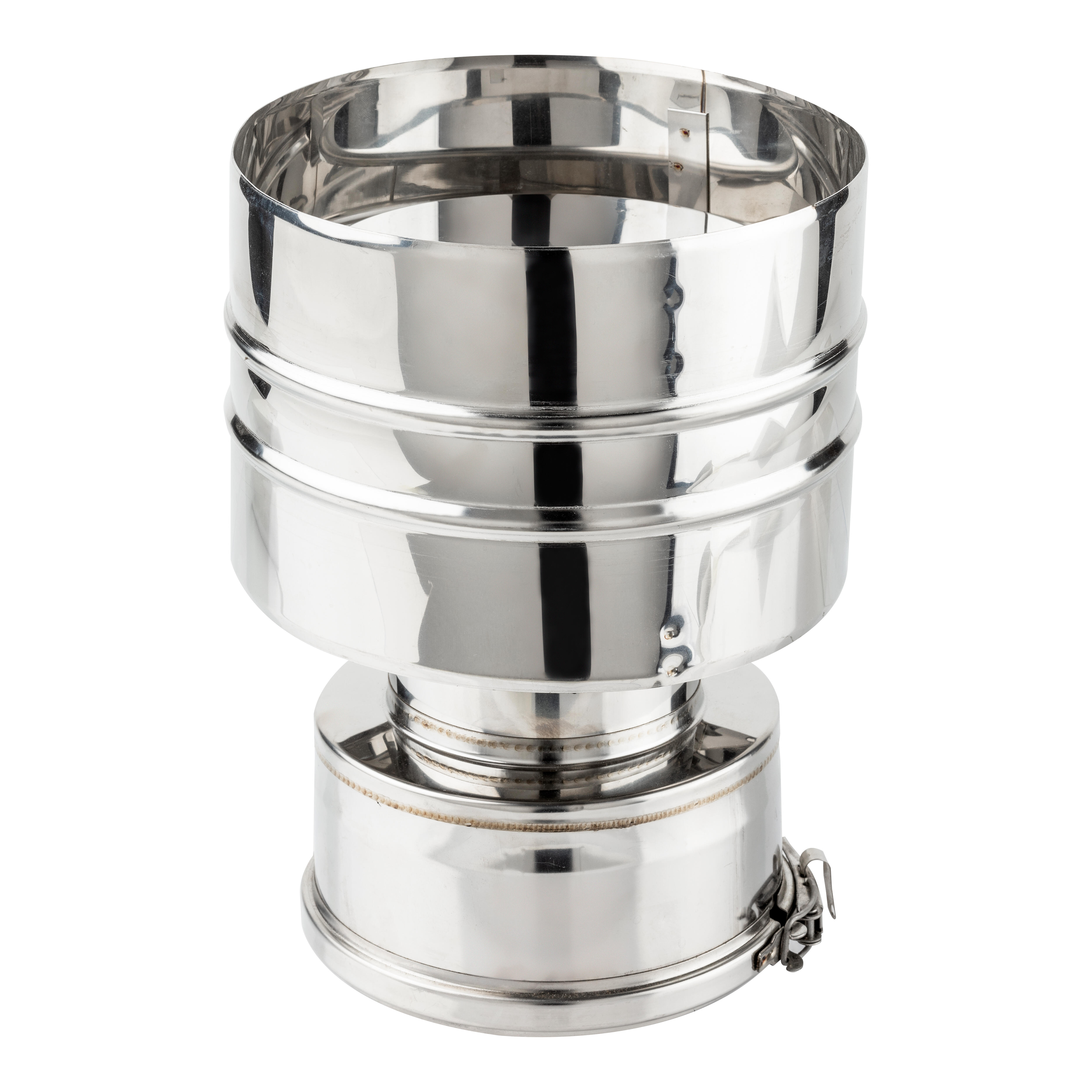Sombrerete doble pared inoxidable 316 para la evacuación de humos de estufas de leña, inserts y hogares. Diámetro: 100 mm.