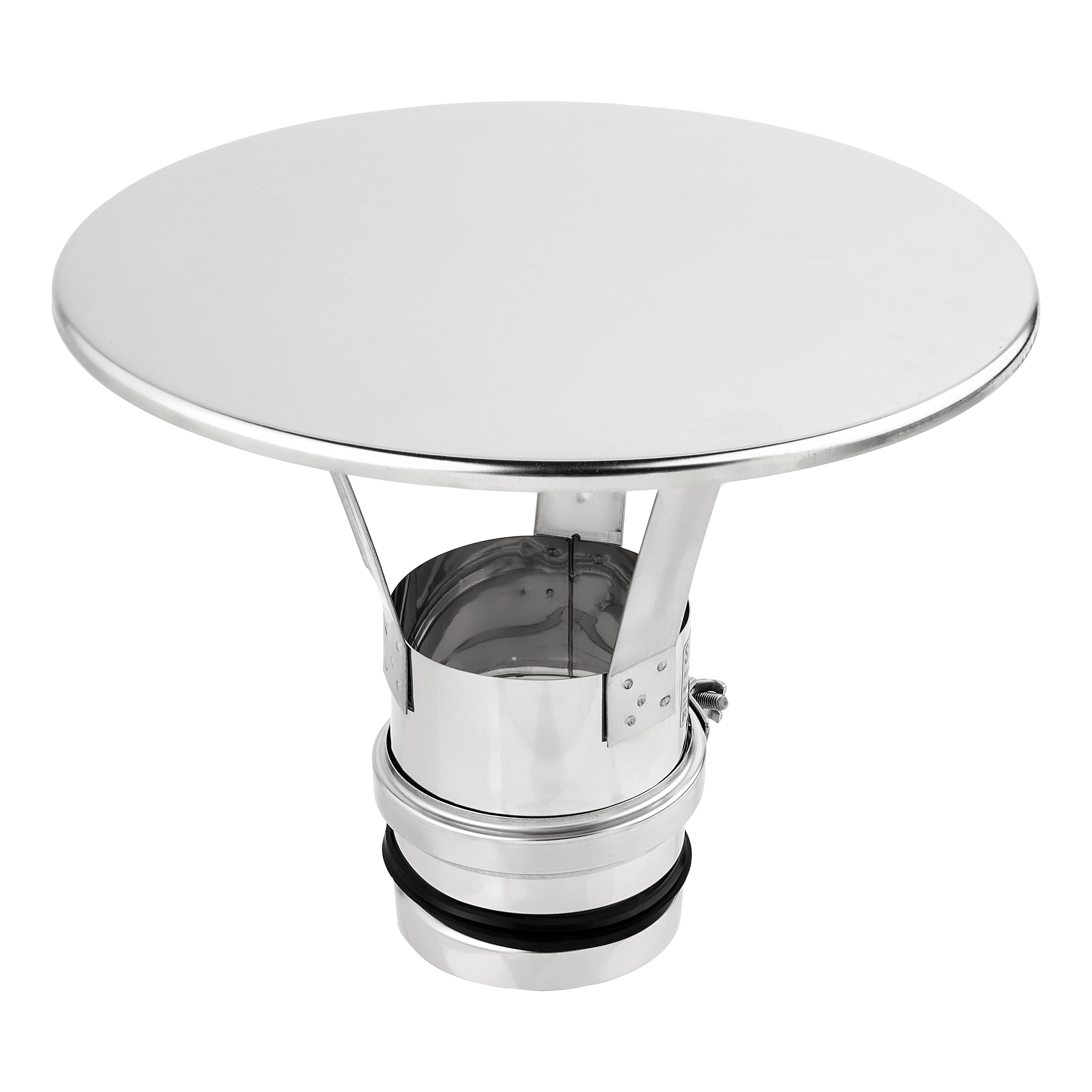 Deflector simple pared inoxidable 316 para la evacuación de humos de estufas de pellet. Diámetro: 80 mm.