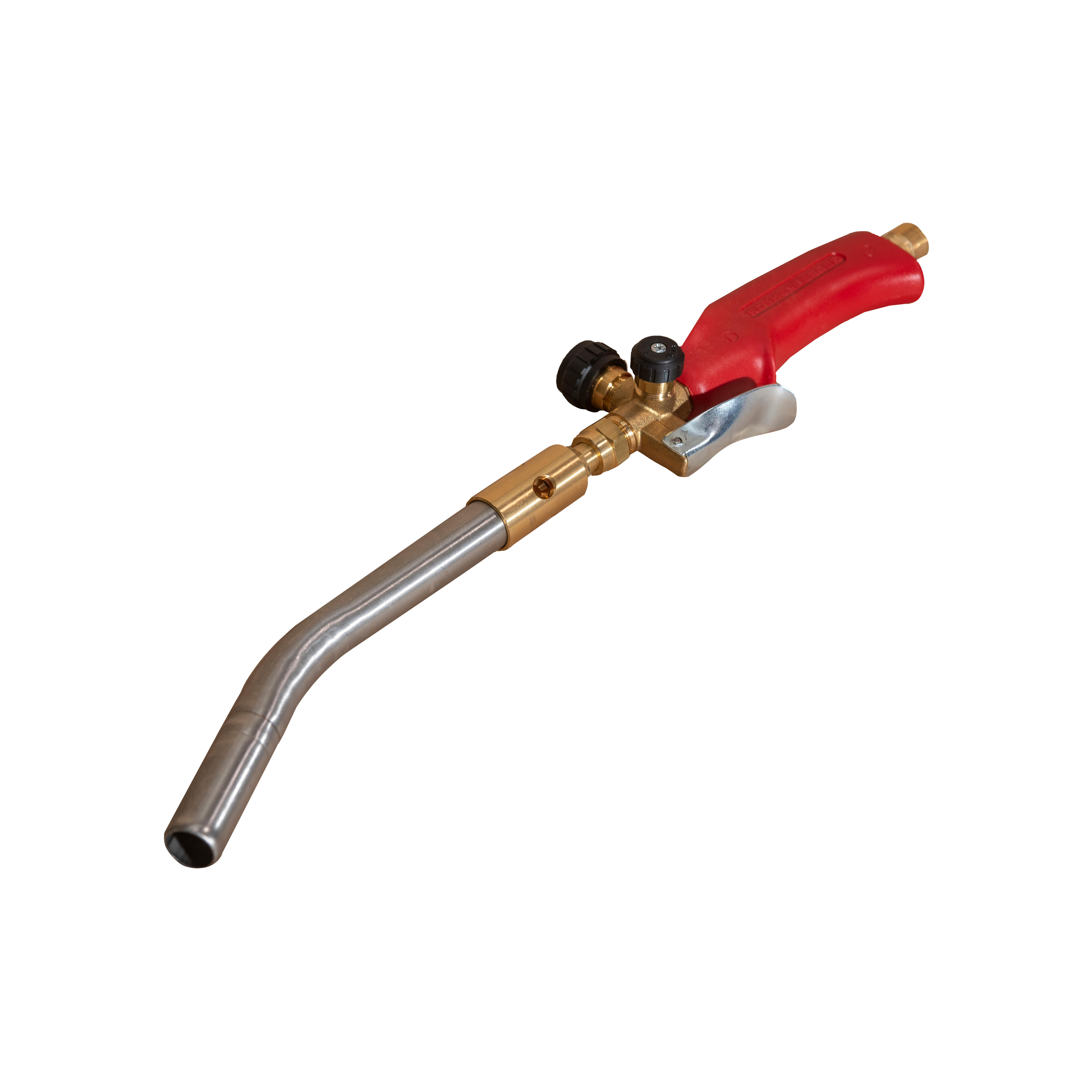 Soplete de alto rendimiento a propano para soldaduras fuertes hasta Ø 28 mm y soldaduras blandas hasta Ø 54 mm. Para soldadura fuerte y blanda de tubos de cobre y acero hasta 2.200 ºC, sin oxígeno.