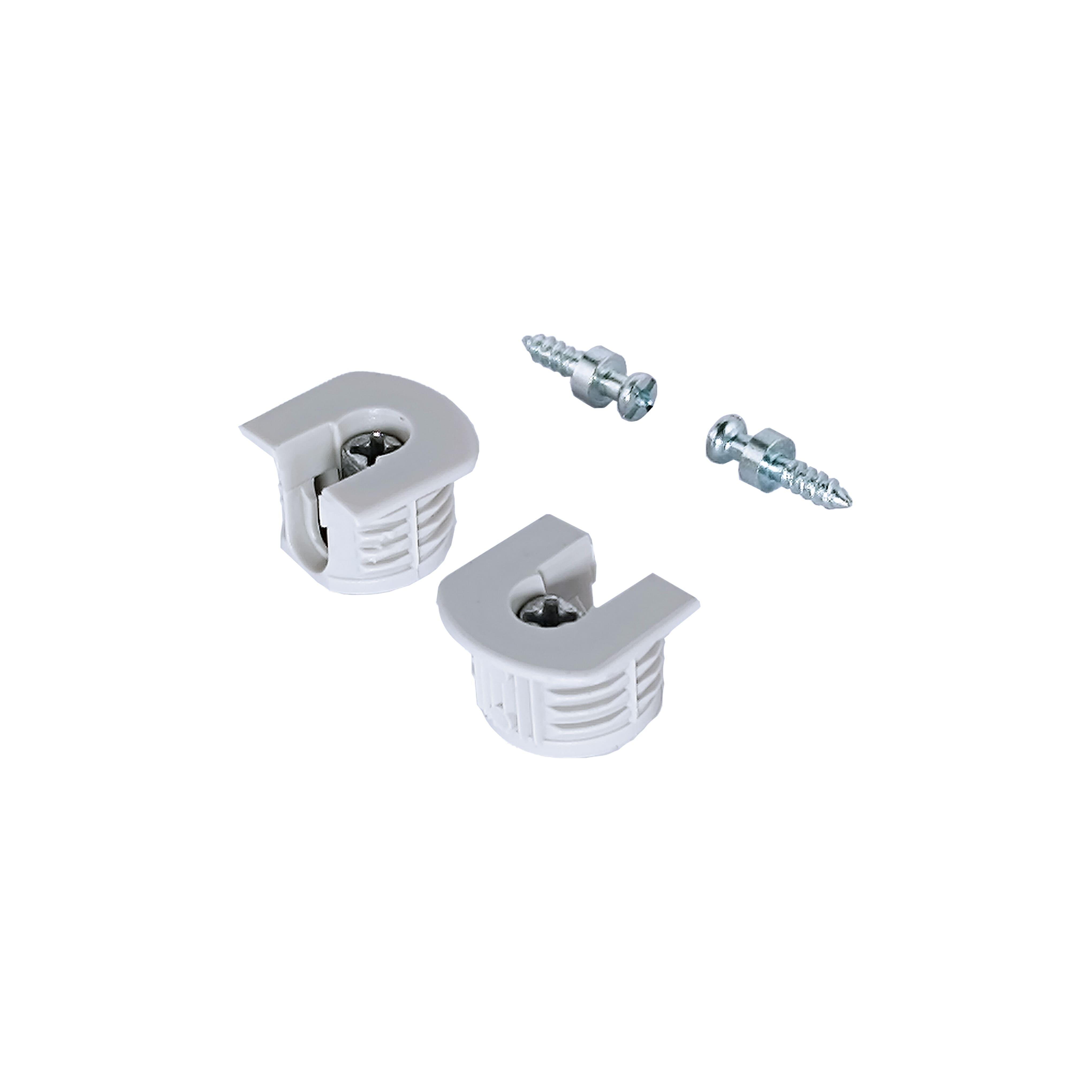 10 soportes invisibles con excéntrica de 20 mm de diámetro en acabado plástico gris.