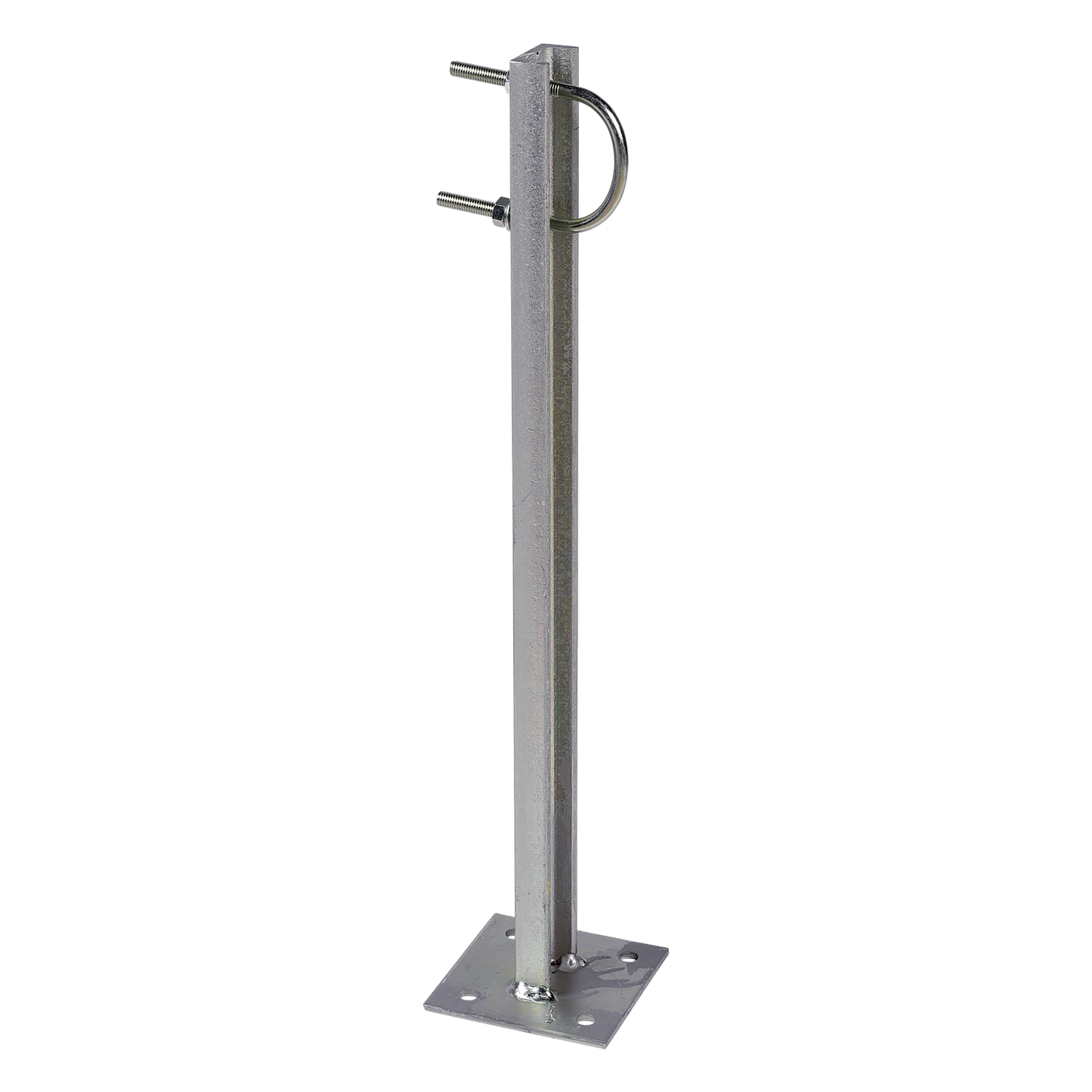 Soporte recto con perfil en forma de "u" para la instalacion de mastil en pared (atornillable), con una separacion de 500mm. se instalan en pares para asegurar el mastil en dos puntos. fabricado en acero y de gran resistencia a la corrosion, gracias a su tratamiento dual de galvanizado y sellado reactivo (rpr).