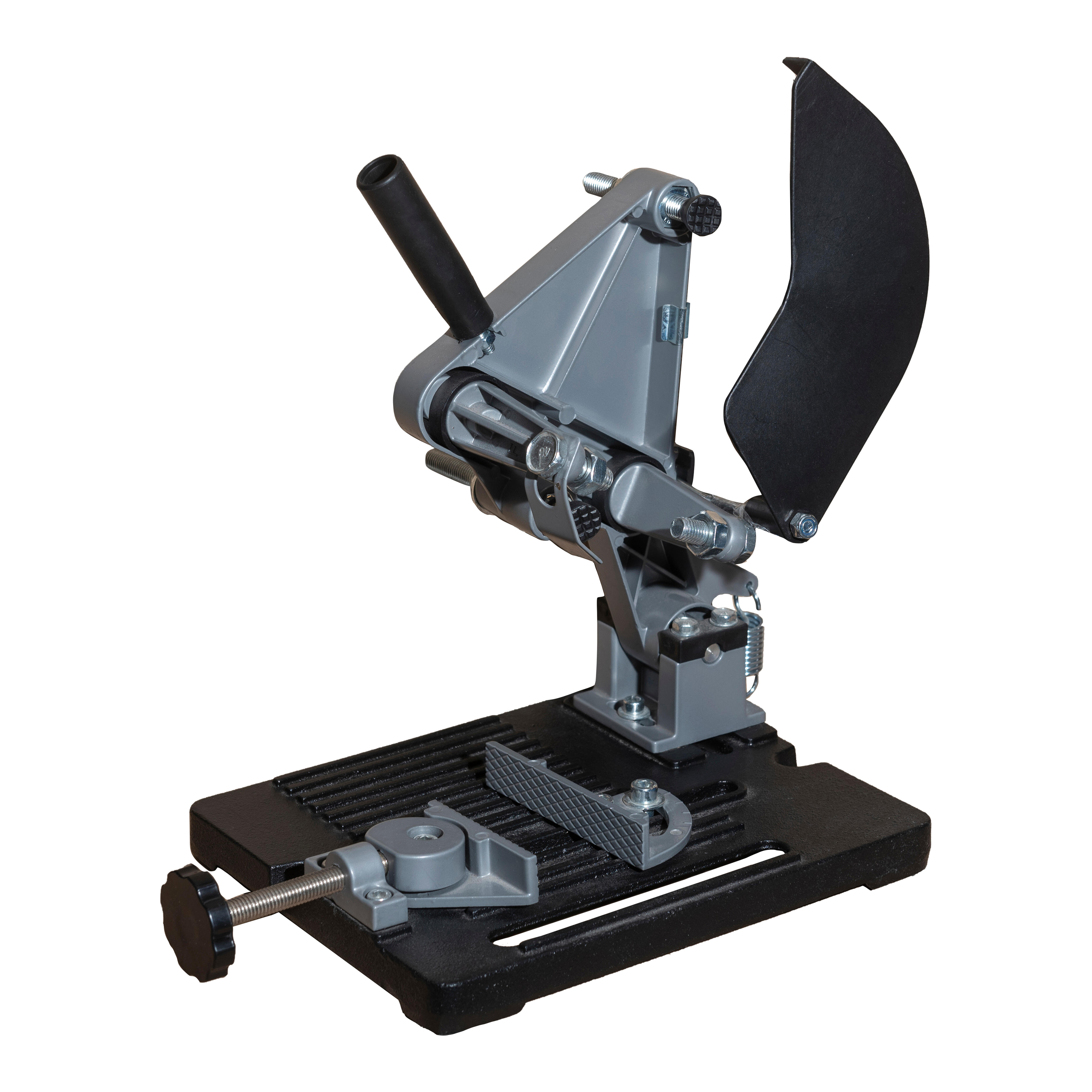 Soporte para amoladora angular monomanual ø 115 o 125 mm. Para cortar metal. Dispositivo de sujeción integrado, anchura de sujeción máxima de 100 mm. Acabado sólido con placa fundida a presión.