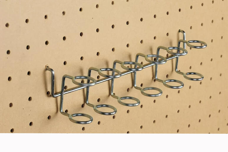 Soporte portaherramientas metálico para colgar y mantener 6 piezas colocadas.