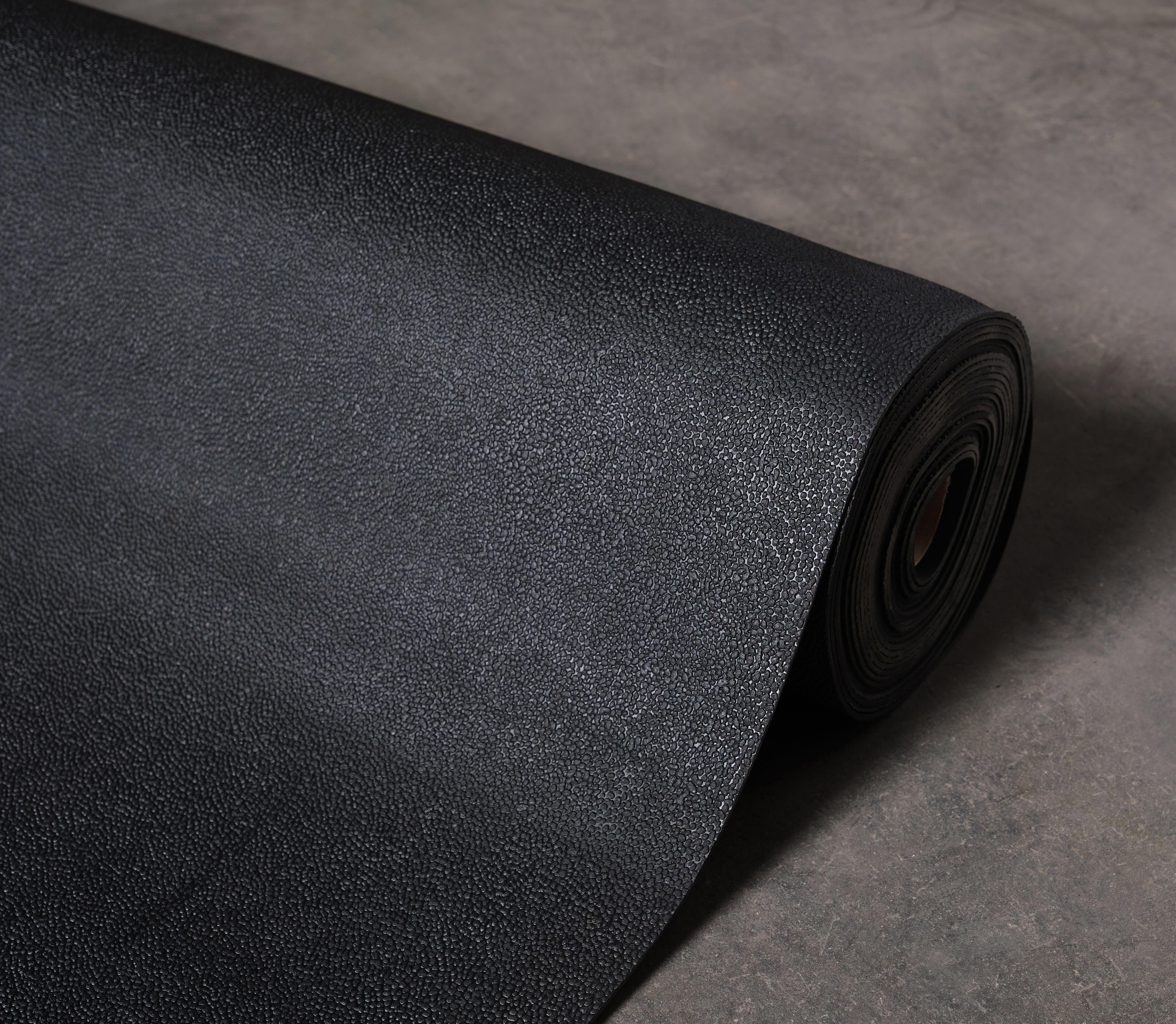 Suelo de caucho rugoso rollo 1,2x1m. Espesor 3mm.. Caucho , en color negro.