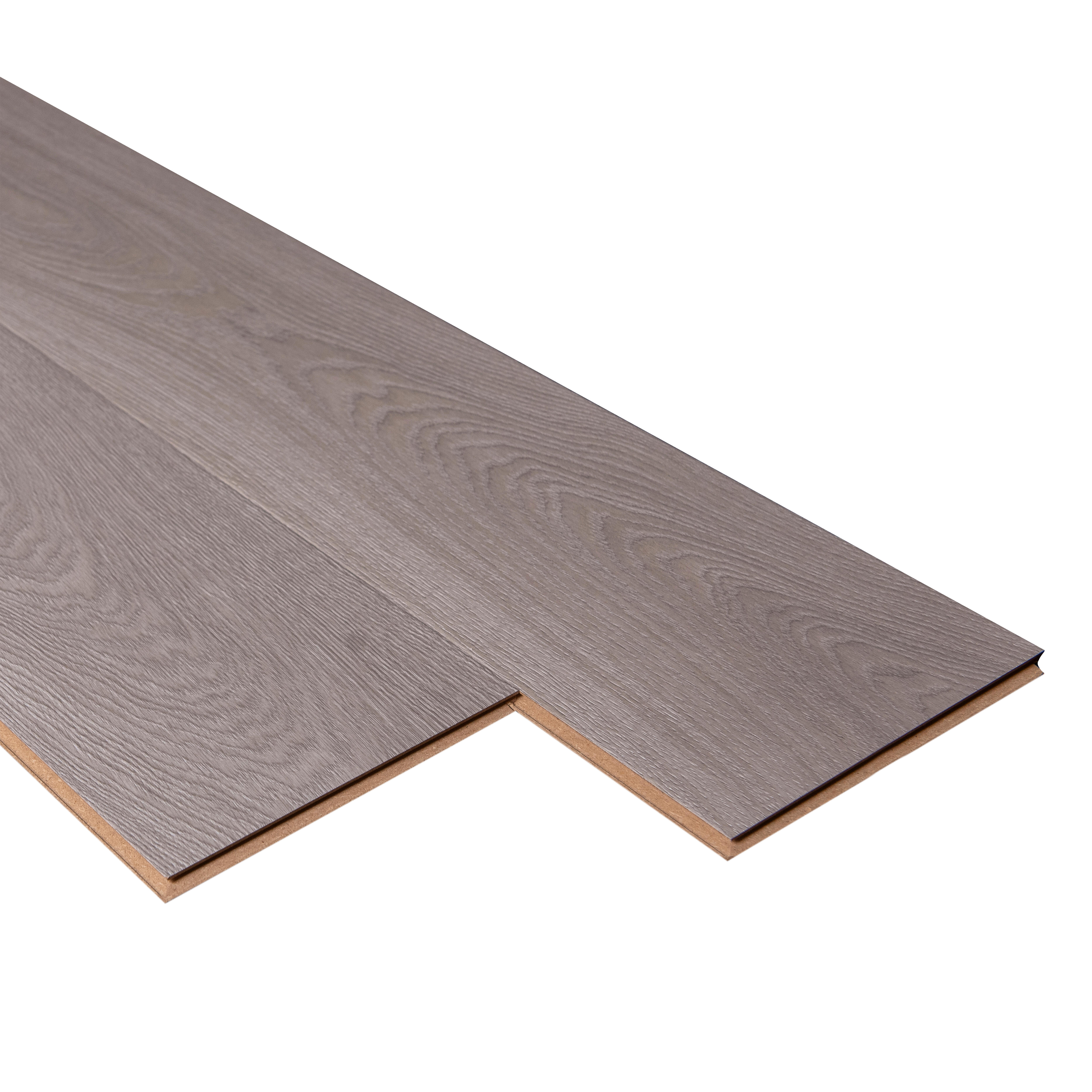 Suelo laminado AC5 8mm. Modelo Roble Zurich. Lama de 126,1x19,2cm. Acabado sincronizado, biselado 4 lados. Instalación en clic. Paquete de 2,179m2. Se vende por paquetes.
