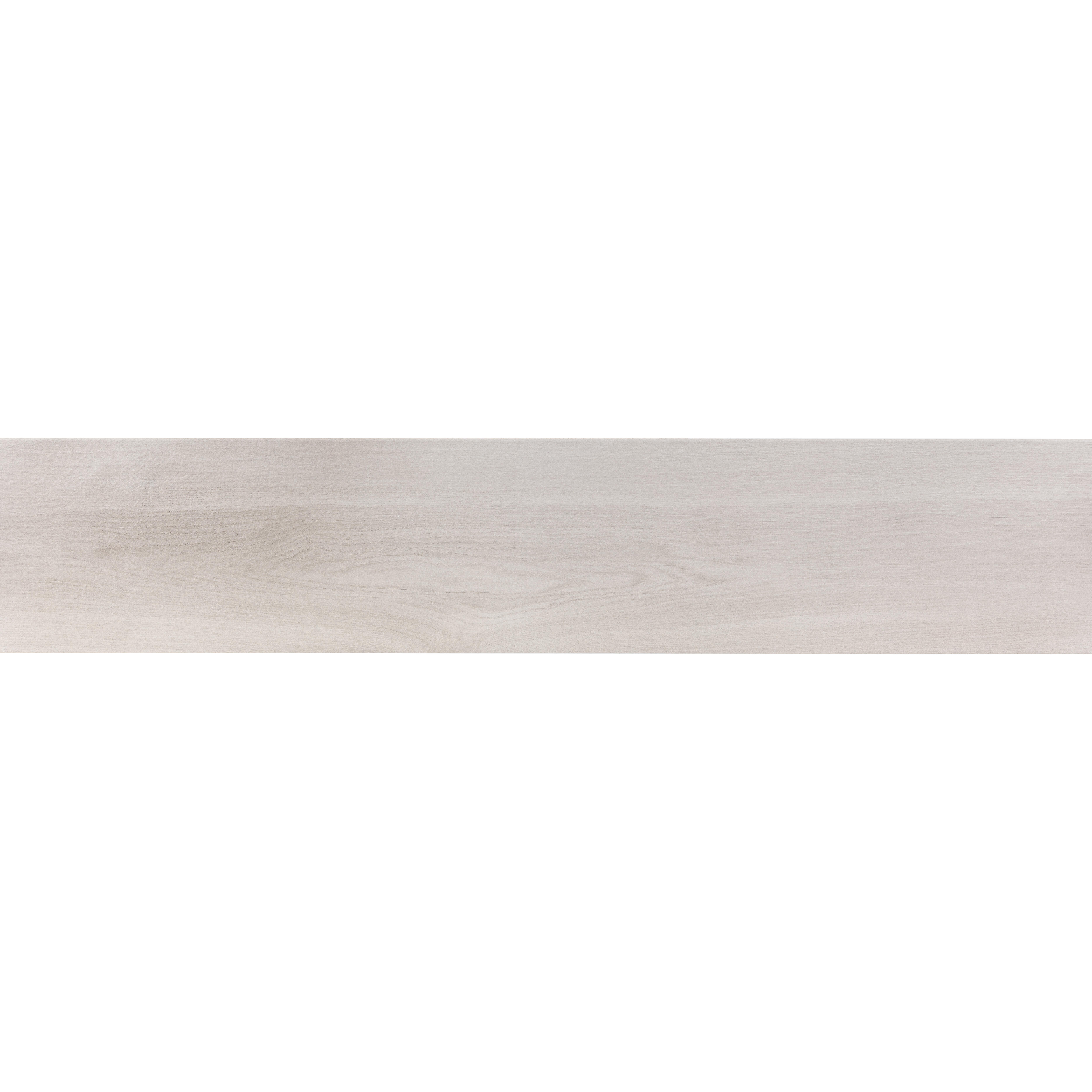 Suelo porcelánico esmaltado, Almenara Blanco tiene un acabado destonificado y aspecto madera. Espesor 8.7mm. La caja contiene 1.40m2. Recomendado uso interior. Es antihielo.