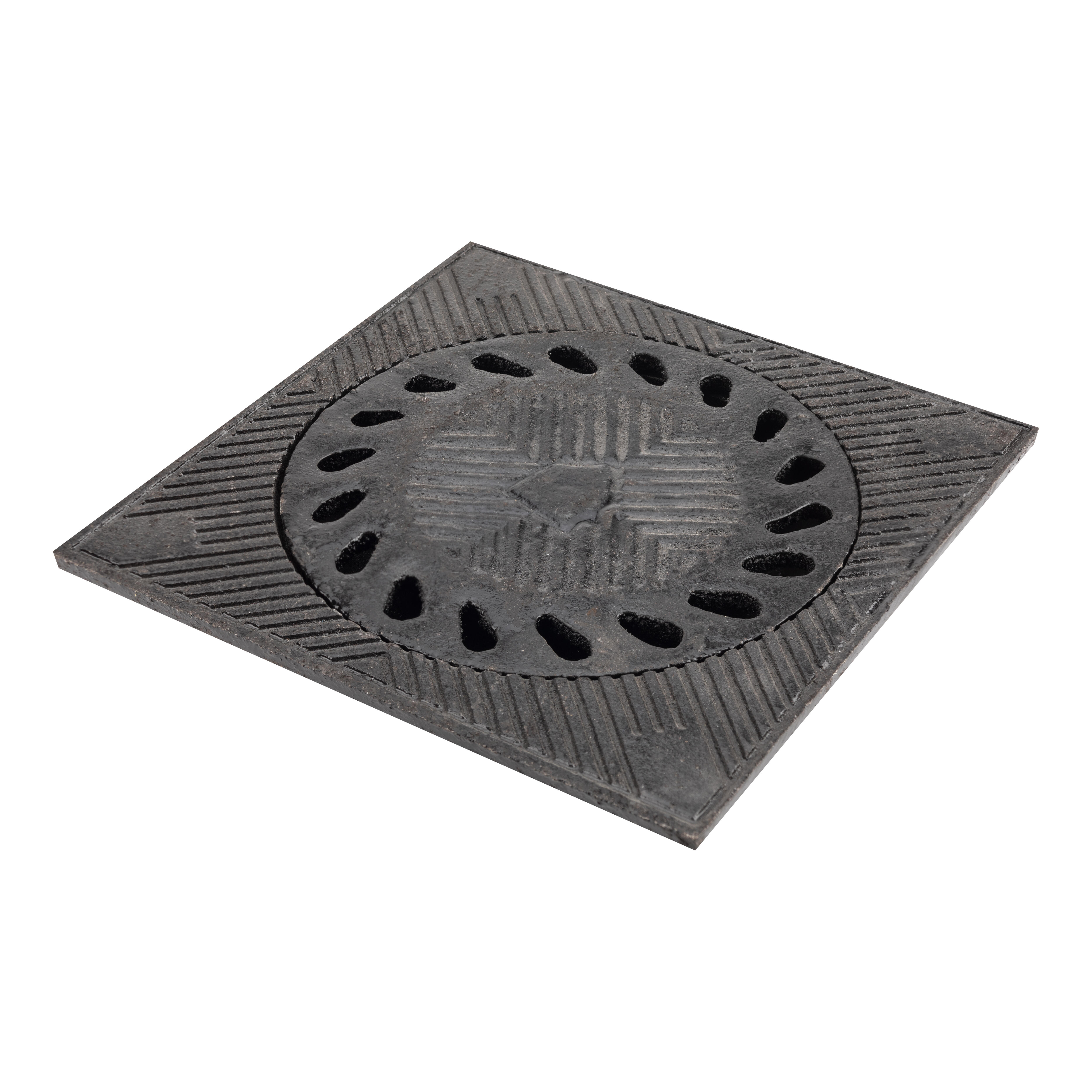 Sumidero sifónico en fundición gris. •Medida 25x25 cm. •Con salida de tubo ø79mm.