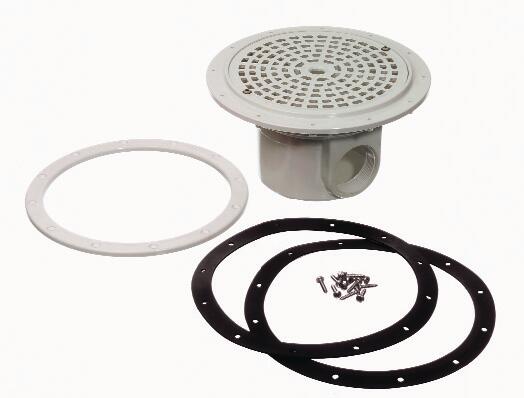 Sumidero para piscina prefabricada. Con juntas de goma. Tornillos en acero inox. Reja ABS de 200mm.