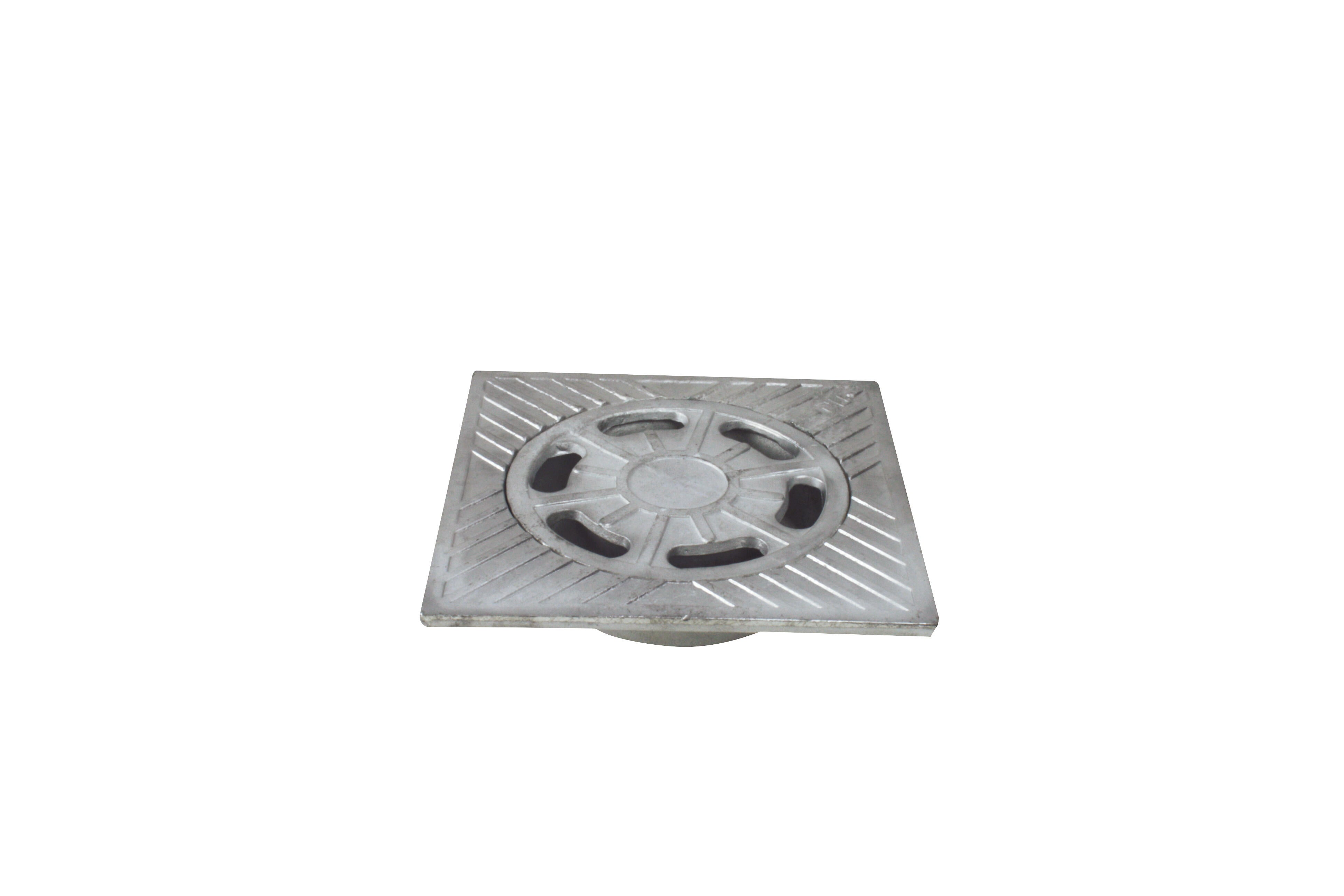 Sumidero de 25x25 cm, de caudal grande, fabricado en aluminio, con salida en sentido vertical y en color cromado. Tiene un diámetro de Ø110 mm.