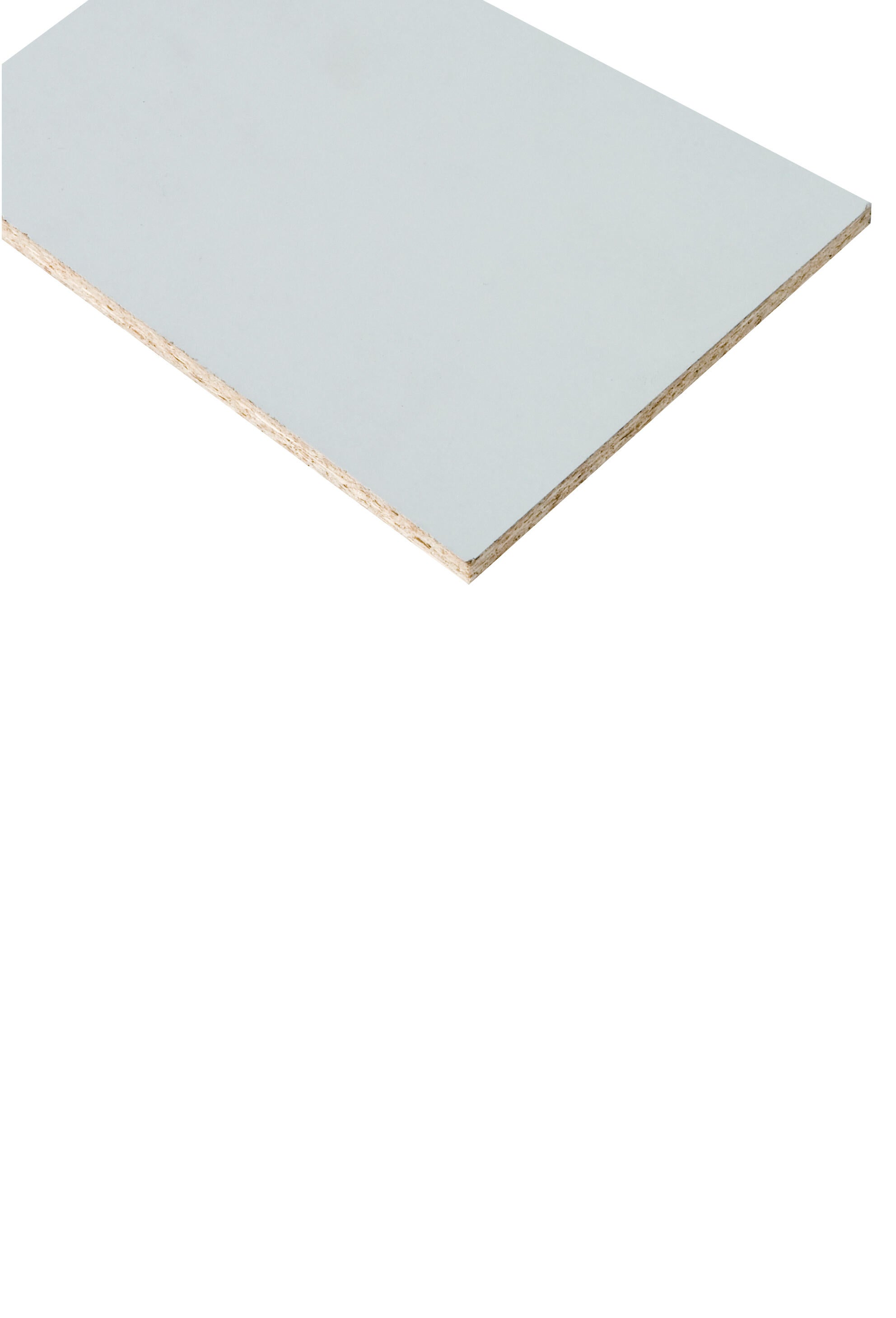 Tablero de melamina en color blanco de medidas 244x122x0,3cm destinado a uso mobiliario.