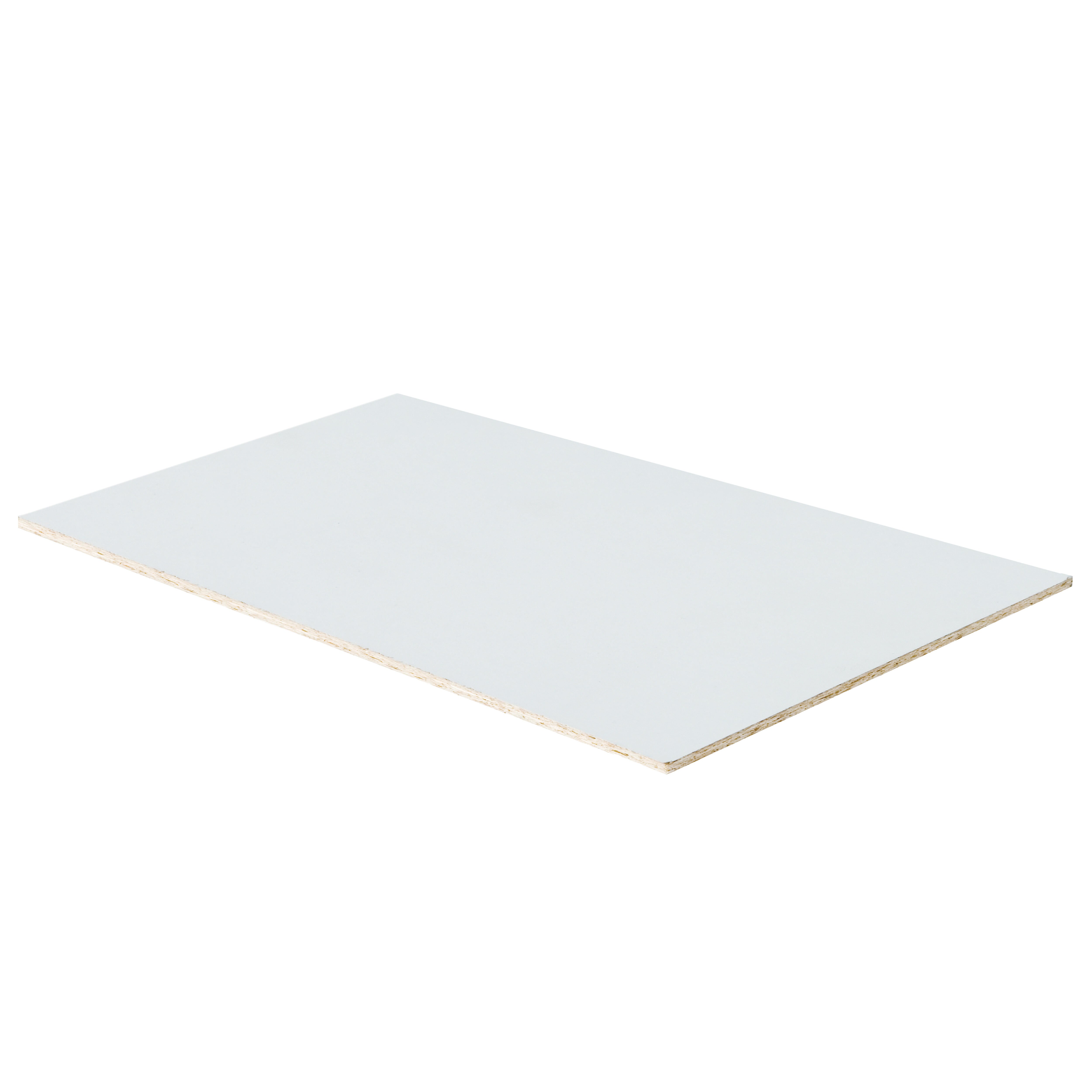 Tablero de melamina en color blanco de medidas 244x122x1cm destinado a uso mobiliario.