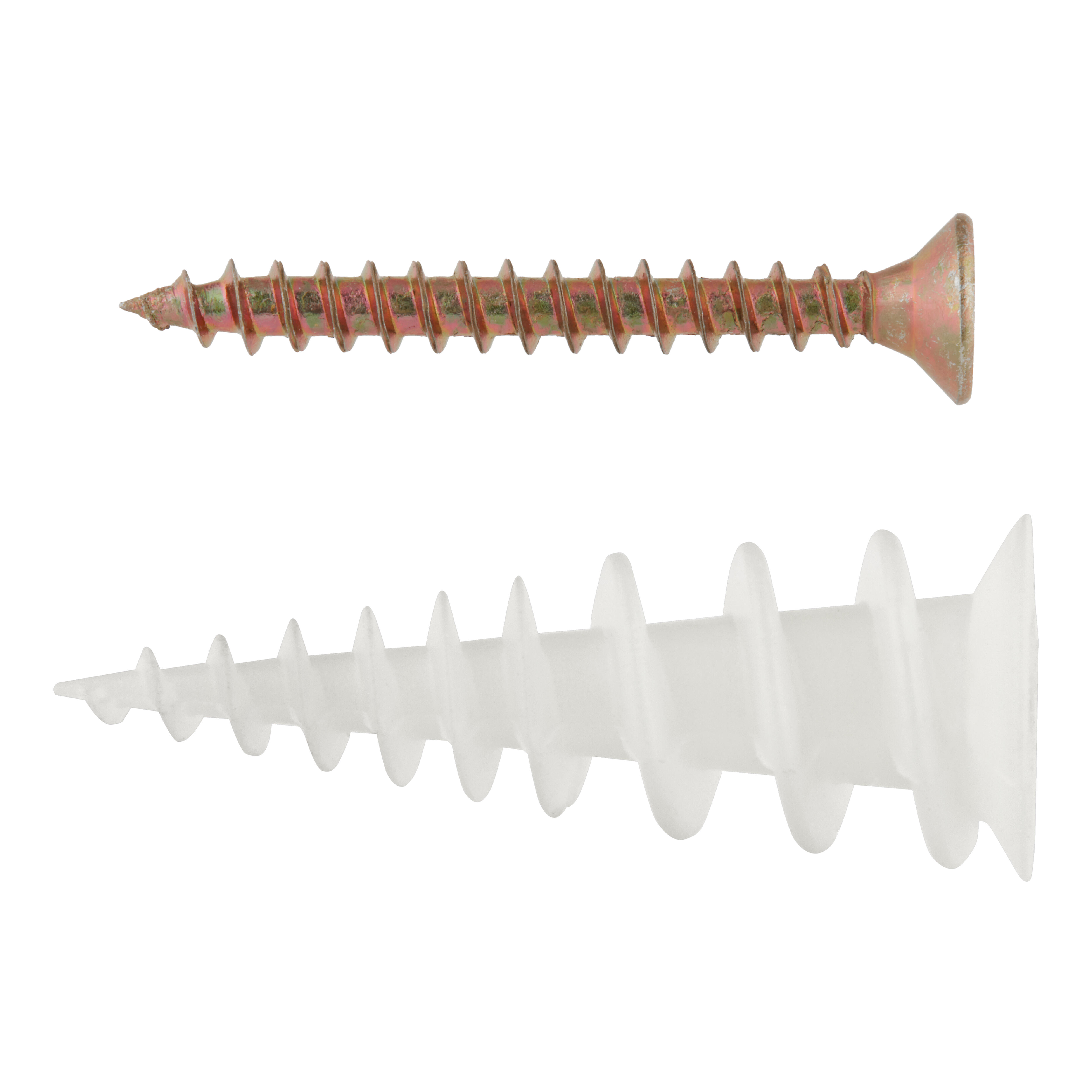 - Usos: este taco es ideal para anclar de forma segura estructuras en placas de cartón yeso, garantizando una sujeción eficaz en materiales huecos.