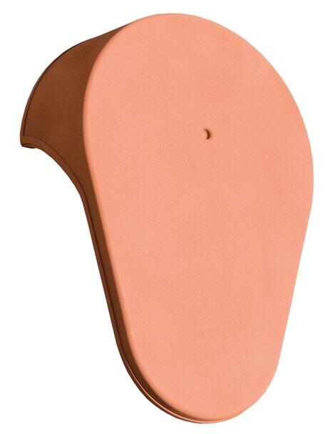 Tapa de caballete para teja de cerámica Duna o S10 de color rojo flameado. Pieza de terminación plana, para el remate en el extremo de la cumbrera que protege el caballete de la entrada de agua y viento por su extremo. Idóneo para cubiertas ventiladas.