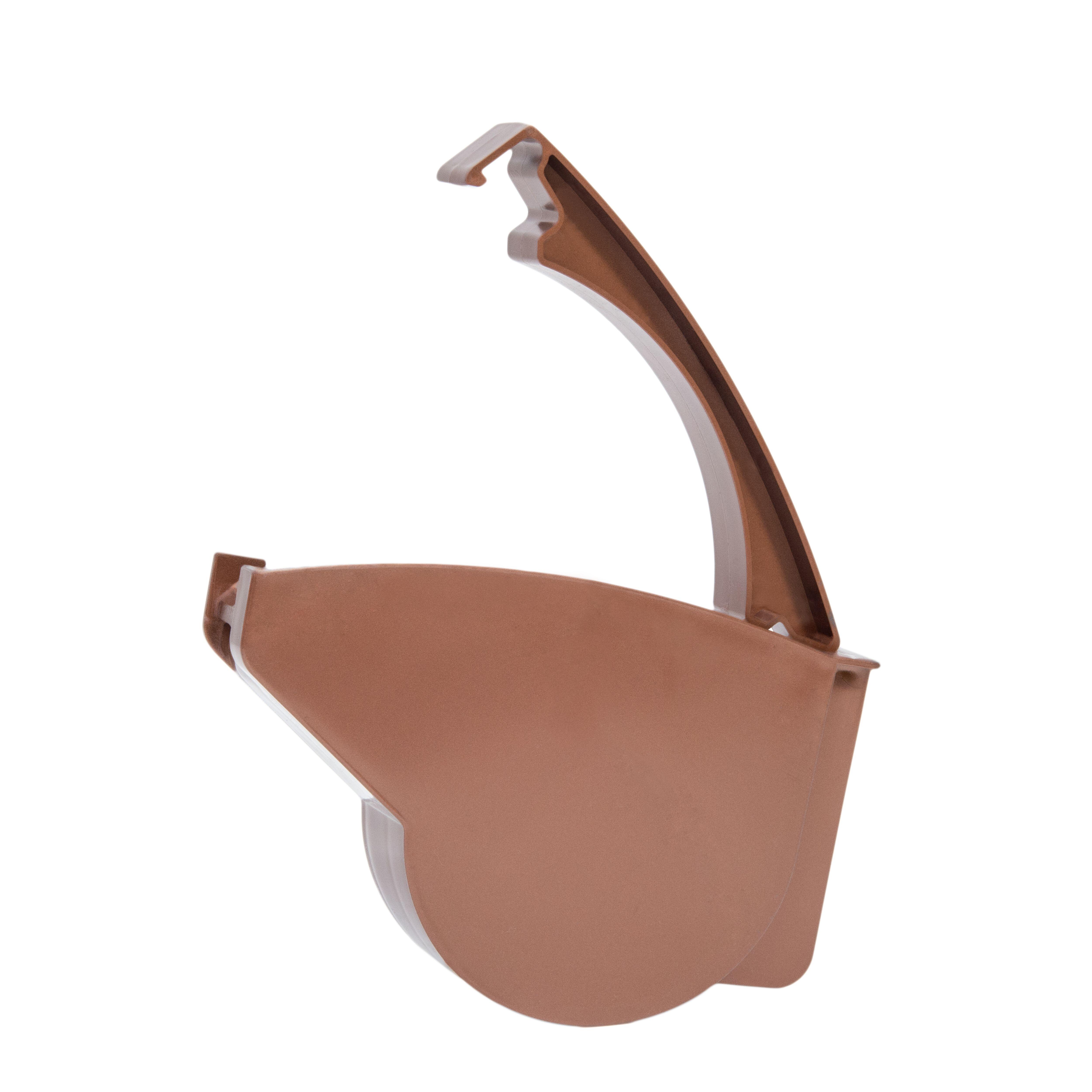 Tapa derecha para canalón de color cobre, un componente de remate de alta gama diseñado para el cierre estanco del terminal siniestro en sistemas de evacuación de aguas pluviales. Este equipo, destaca por su excelencia técnica y su integración arquitectónica en cubiertas premium.