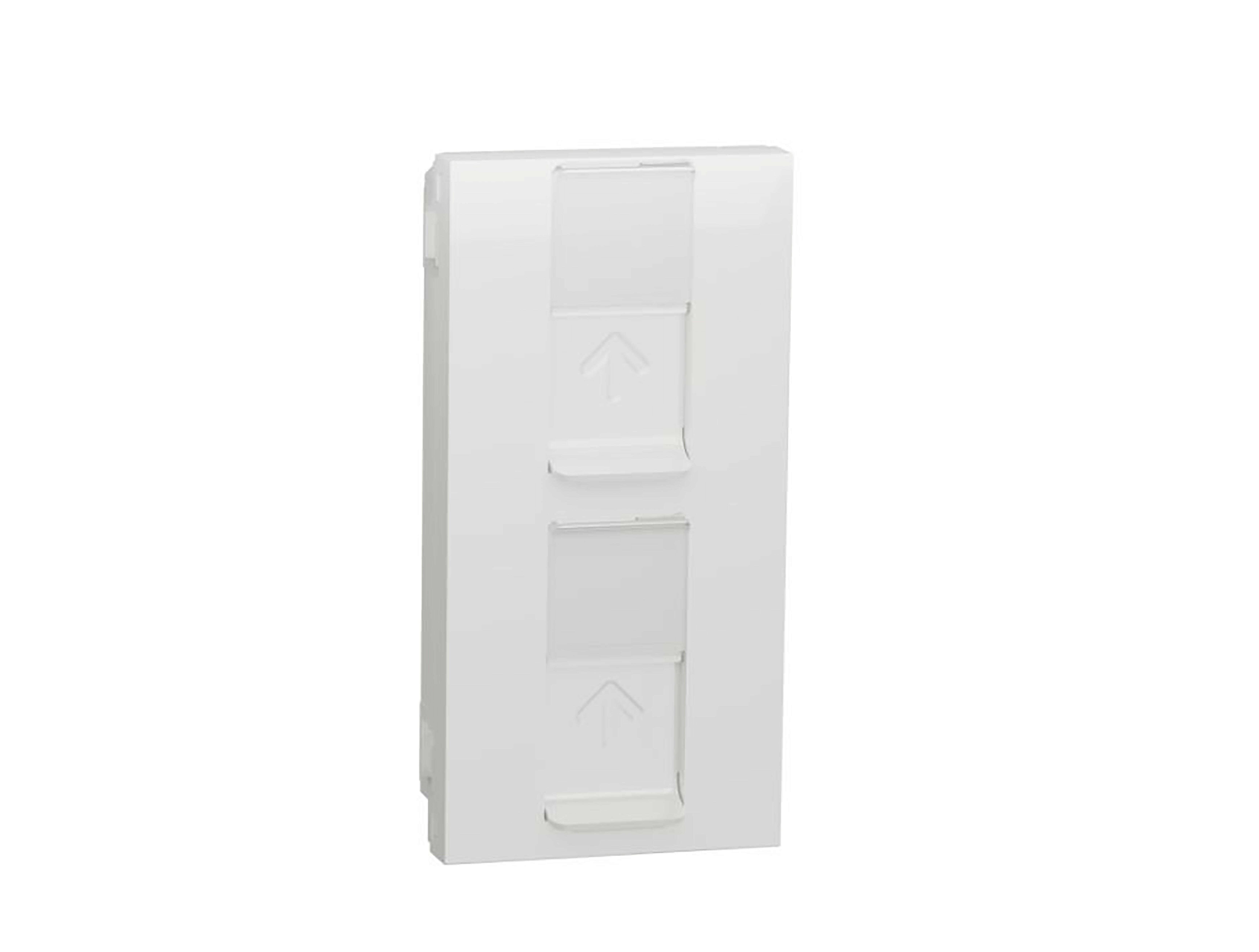 Tapa doble RJ45 de la serie Keystone V&D New Única de Schneider. Color blanco. Contiene un mecanismo con bastidor fijo y tipo de cable RAL 9003. Grado de protección IP21, IK04.