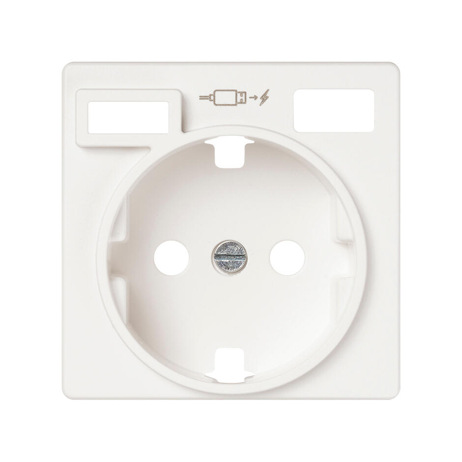 Tapa para base de enchufe Schuko con 2 entradas USB tipo A y tipo C de la serie Simon 82 Concept. Color blanco.