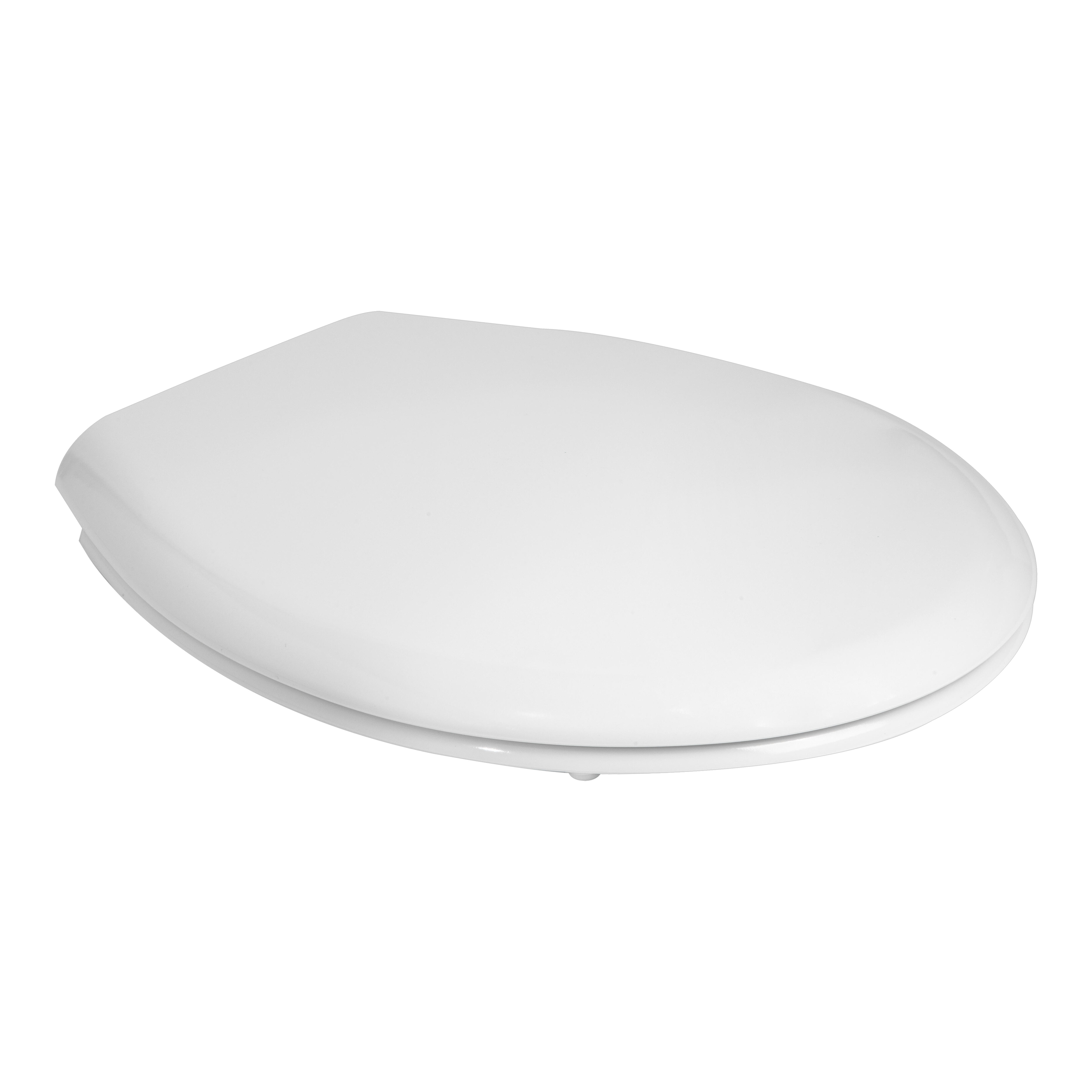 Asiento y tapa para inodoro de resina termo endurecida lacada. Bisagras en acero. Tapa caída amortiguada.