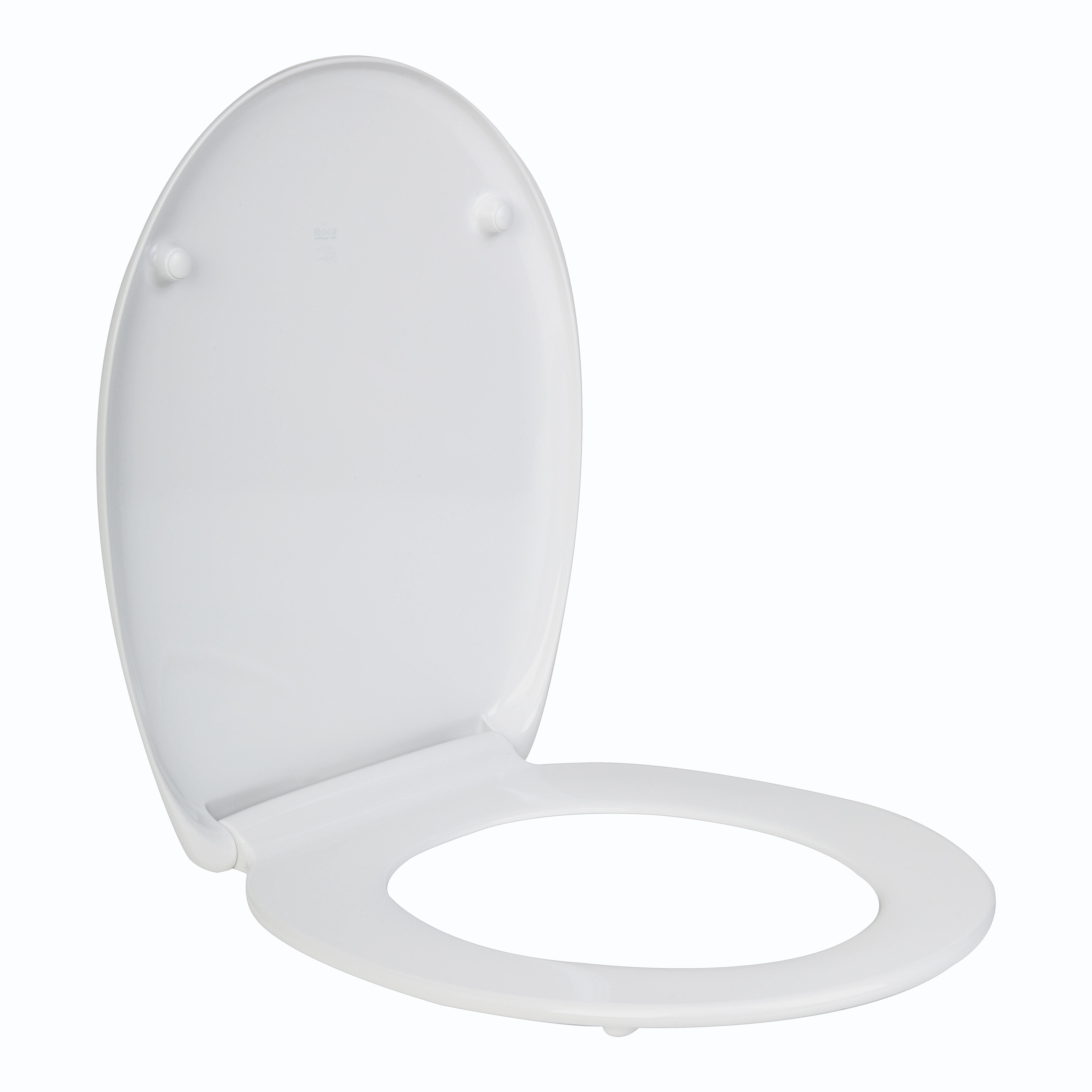 Asiento y tapa para inodoro de resina de Supralit® , con forma redonda. Con bisagras de acero inoxidable.