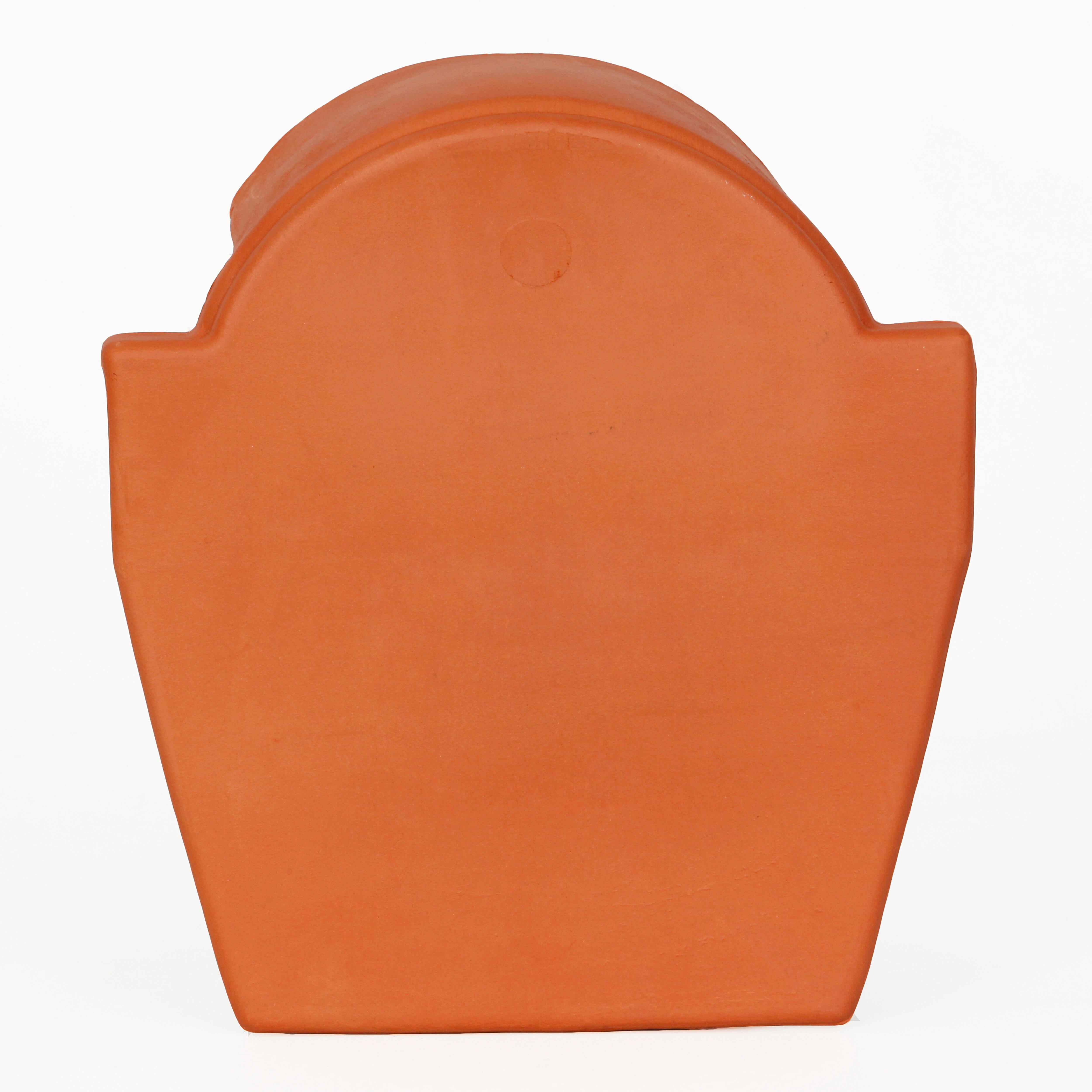 Pieza cerámica de arcilla cocida en acabado color rojo para remate de los extremos de la cumbrera de la cubierta inclinada.