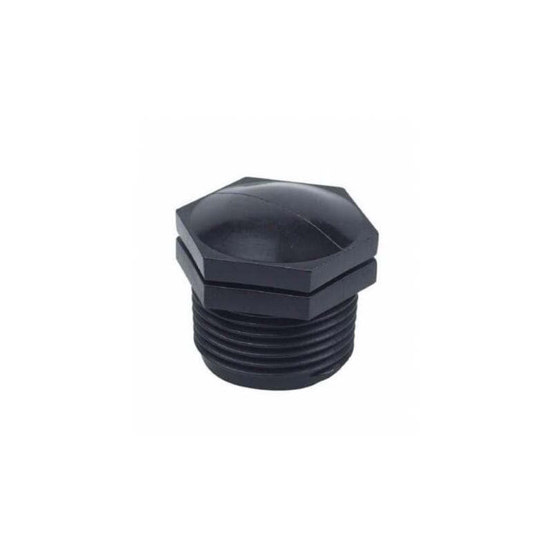 Tapón con rosca macho de polietileno. •Diámetro: Ø1 1/2". •Para instalaciones de riego en jardinería, agrícola, fontanería y conducciones de agua.