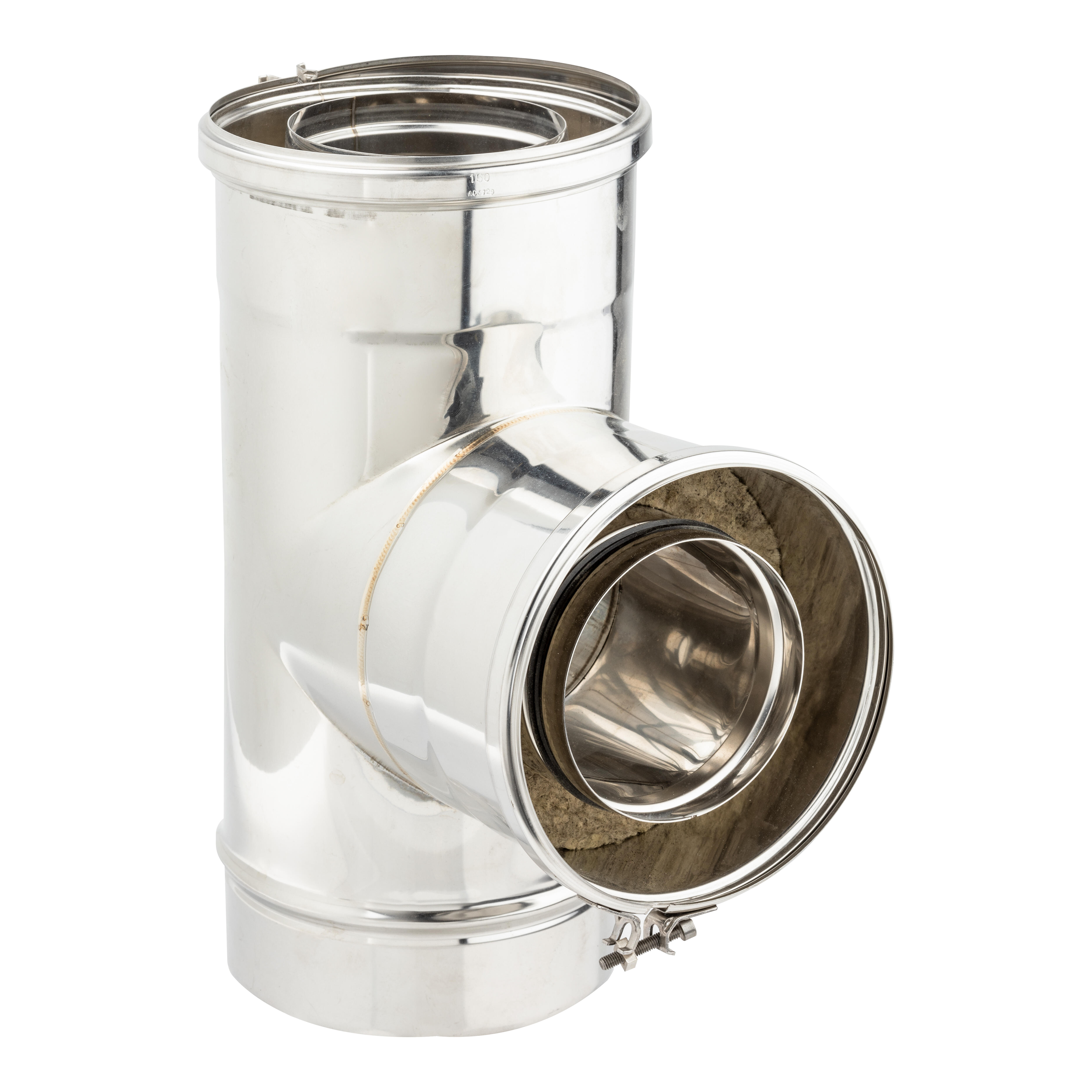 Te doble pared inoxidable 316 para la evacuación de humos de estufas de pellet. Diámetro: 80 mm.