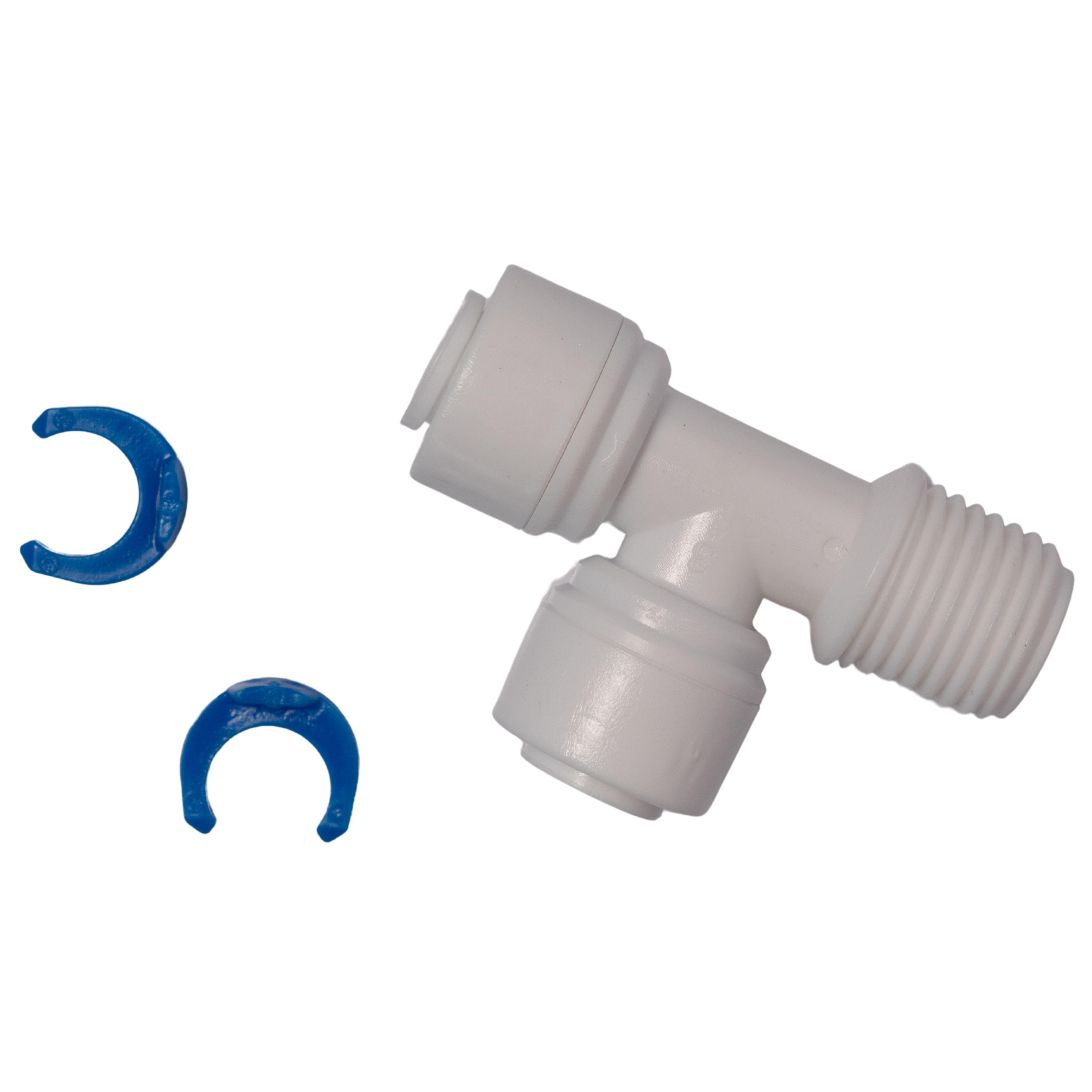 •Conector T Postfiltro tubo 1/4". Rosca macho 1/4".