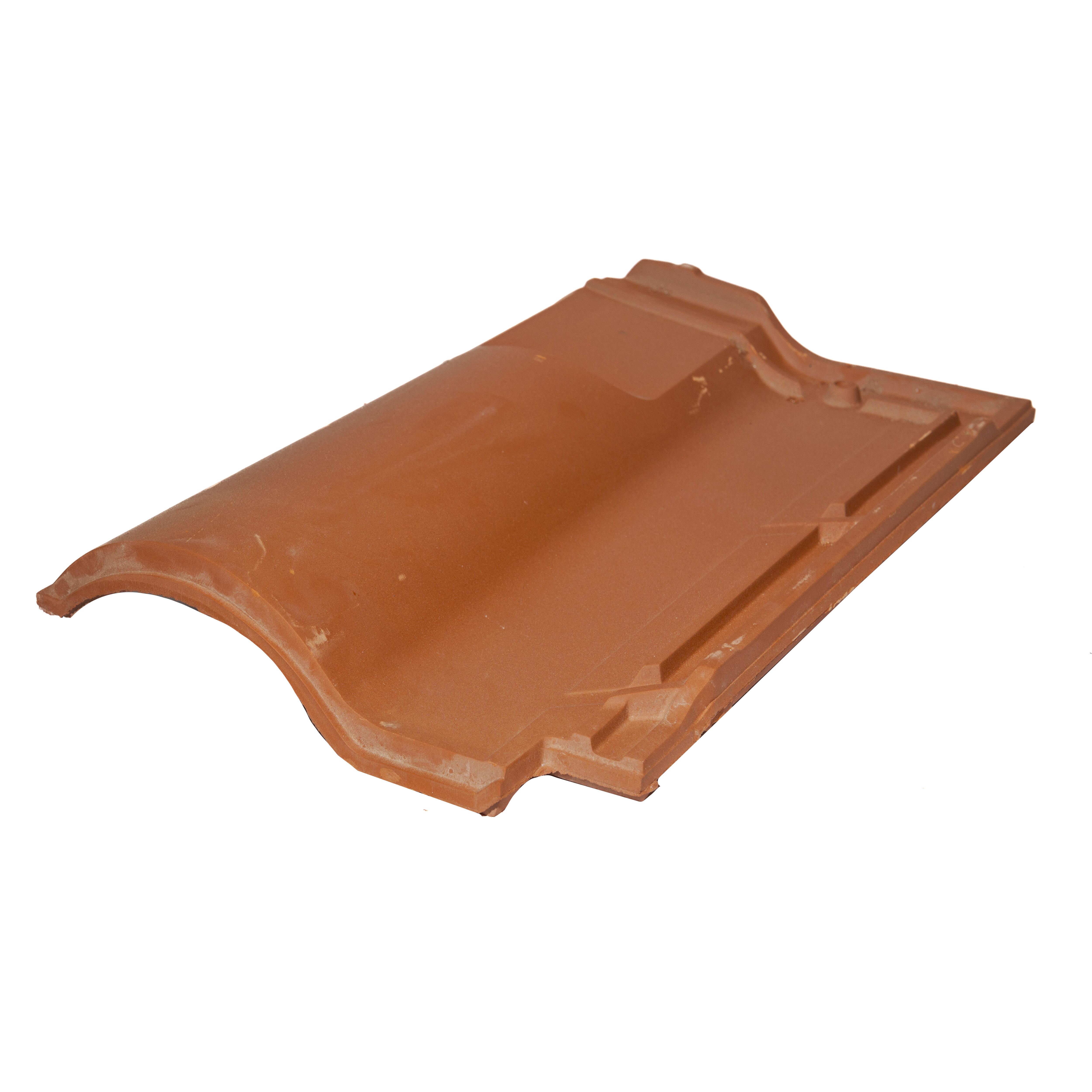 Teja de ventilación Meridional de color rojo. Pieza con las mismas dimensiones exteriores de la teja meridional paja, pero que incorpora en su parte superior un relieve con orificios que permiten la entrada de aire, facilitando su circulación bajo las tejas. La circulación de aire bajo las tejas aumenta la durabilidad del tejado y contribuye a equilibrar la temperatura bajo la cubierta.