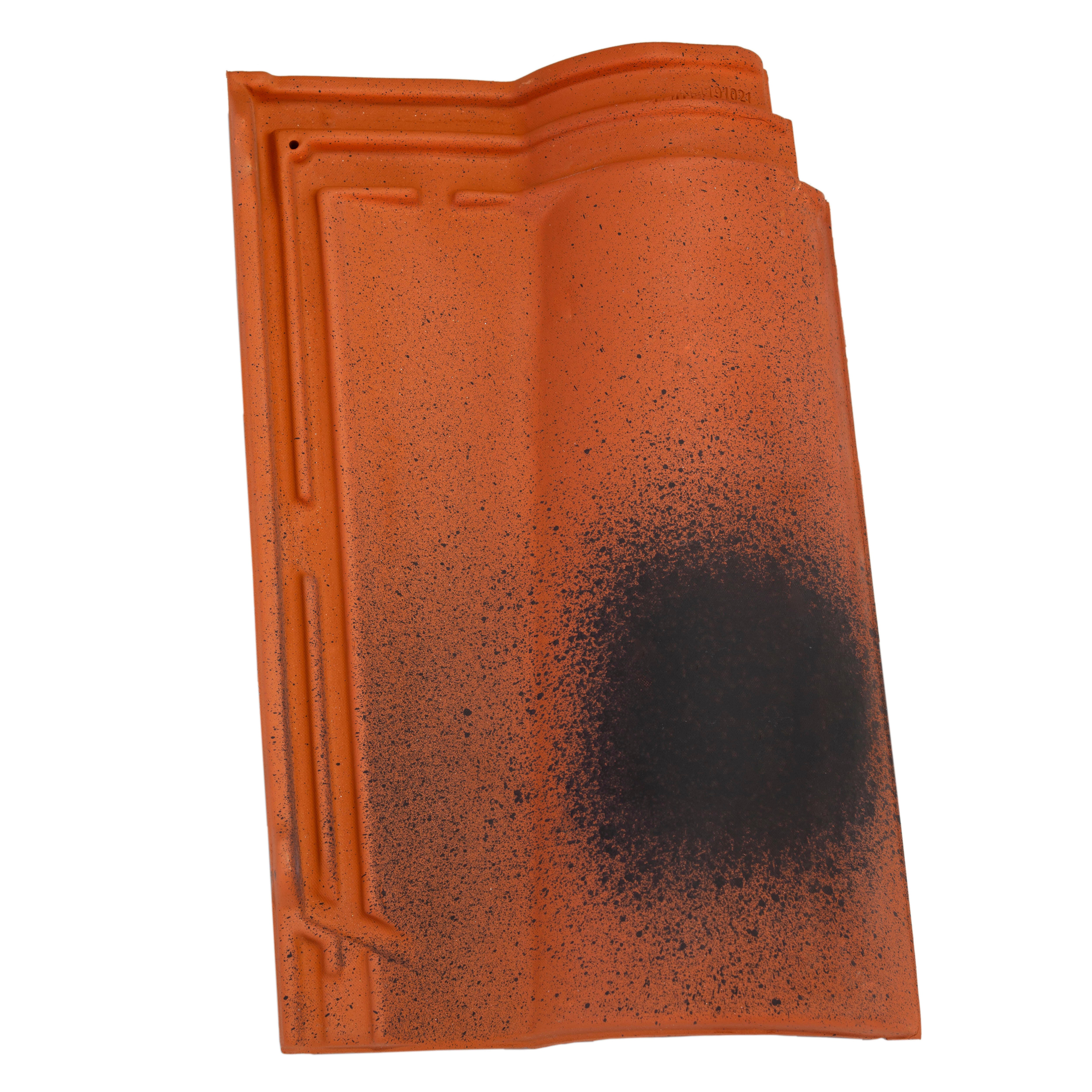 Teja cerámica mixta S10 de color rojo flameado. 45,8x28,2cm. La Teja cerámica S10 posee un perfil mixto que remarca su forma combinando lineas curvas y rectas.