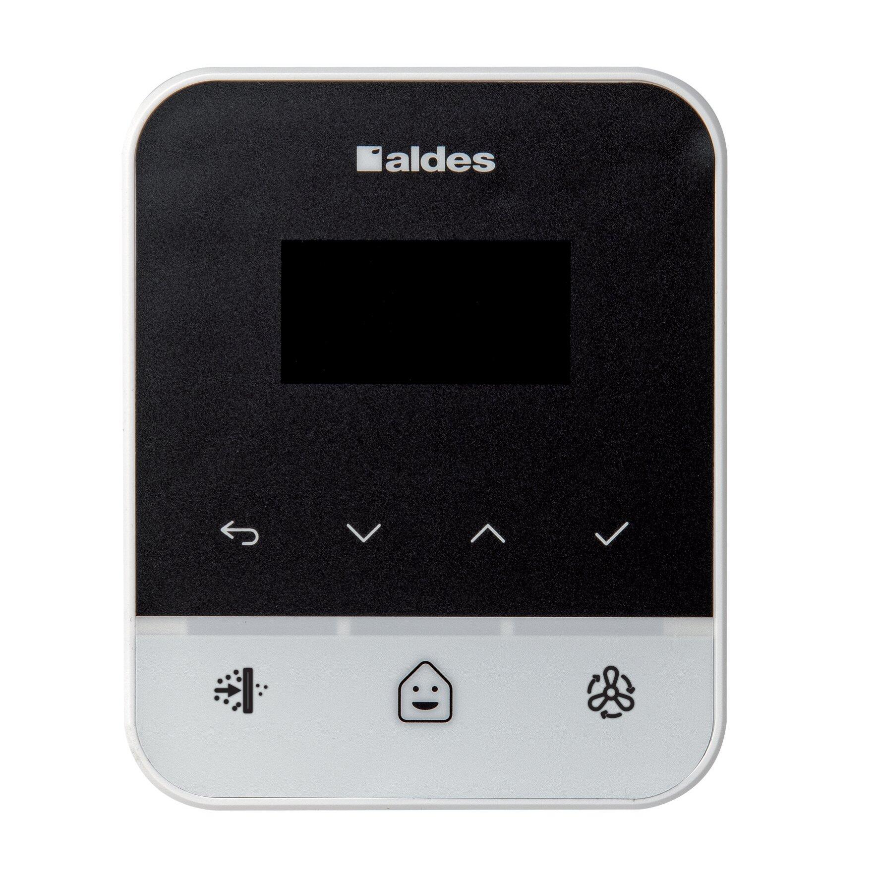 Telemando con cable de diseño cuidado, compatible con los grupos VMC de doble flujo InspirAir Top 300 y 450 e Inspirair Side 150 Prima y 180-300 Classic. La parte trasera del mando a distancia integra LEDs que cambian de color y velocidad de parpadeo según el funcionamiento de la unidad de ventilación y ofrece información clave.