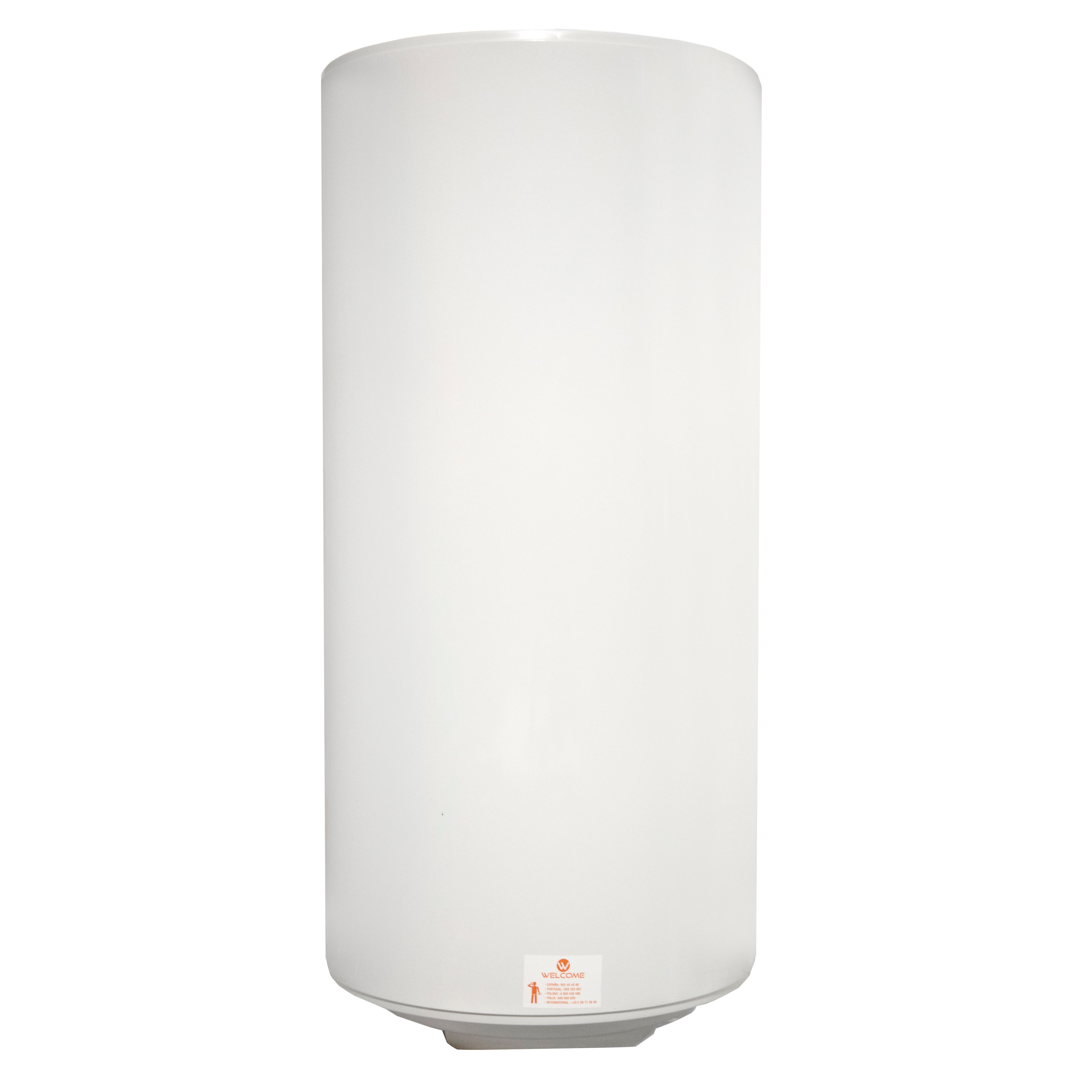 Termo eléctrico 200 litros Welcome. De instalación vertical con una potencia 2200W. Regulador interior. Resistencia blindada. Medidas 1540x505x535mm. Incluye válvula de seguridad, cable de conexión, clavija y manguitos electrolíticos.
