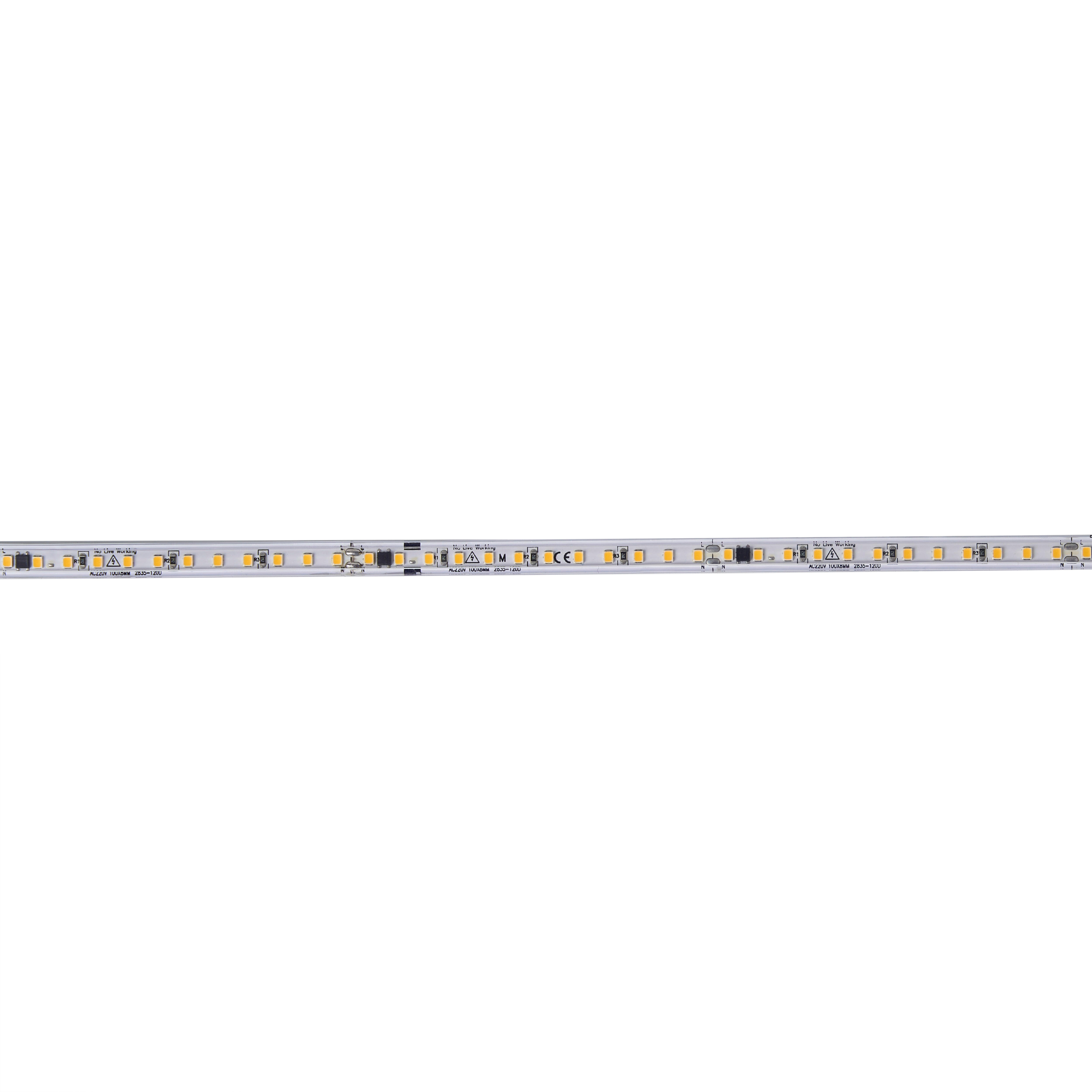 Tira led 230V, al corte (mínimo 10cm), potencia 12W/m. Luz neutra, 4000ºK. Grado de protección IP65. Flujo luminoso 1200lm/m. Con posibilidad de regulación.